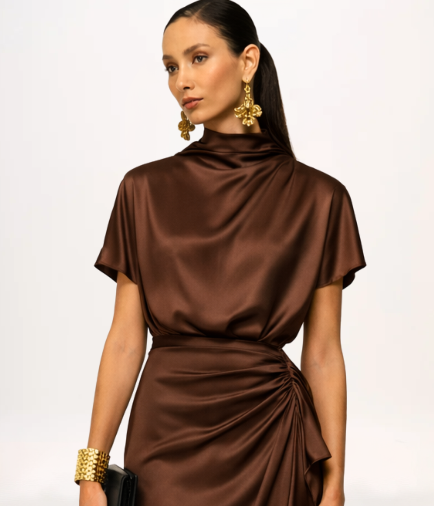 A Blusa Carol em Cetim é a personificação da elegância versátil e do luxo discreto. Confeccionada em cetim de toque sedoso, este modelo se destaca pela sua modelagem sofisticada e pelo acabamento impecável. É uma peça essencial e atemporal para compor looks que transitam do formal ao casual-chic com fluidez, oferecendo uma postura requintada e adaptando-se com maestria às mais diversas composições.
