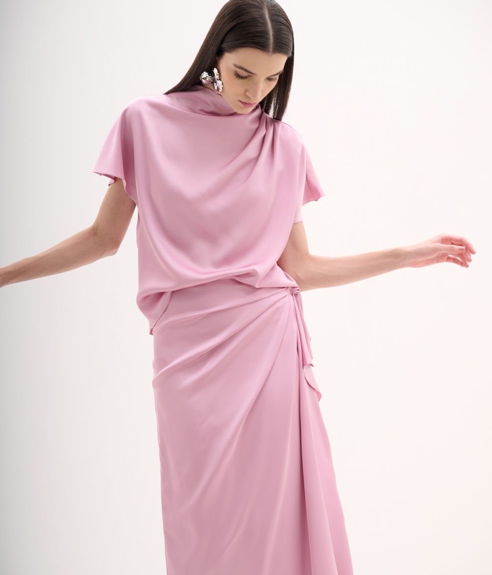 A Blusa Carol em Cetim Rose é a personificação da elegância versátil e do luxo discreto. Confeccionada em cetim de toque sedoso, este modelo se destaca pela sua modelagem sofisticada e pelo acabamento impecável. Na cor Rose, uma tonalidade delicada e romântica, é uma peça essencial para compor looks que transitam do formal ao casual-chic com fluidez e estilo.