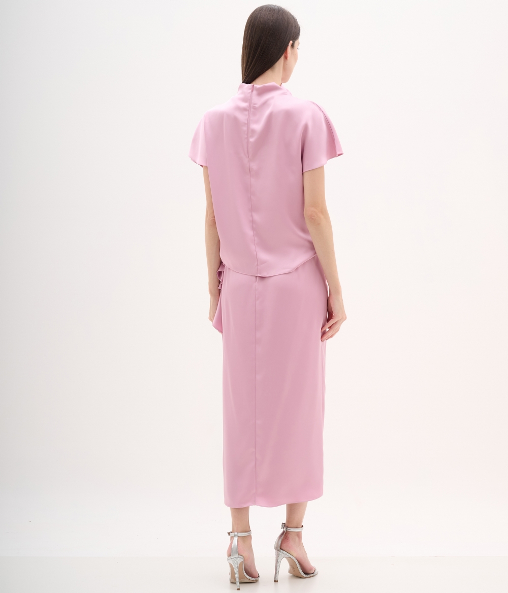 Drapeado frontal suave, valorizando o caimento natural do tecido.