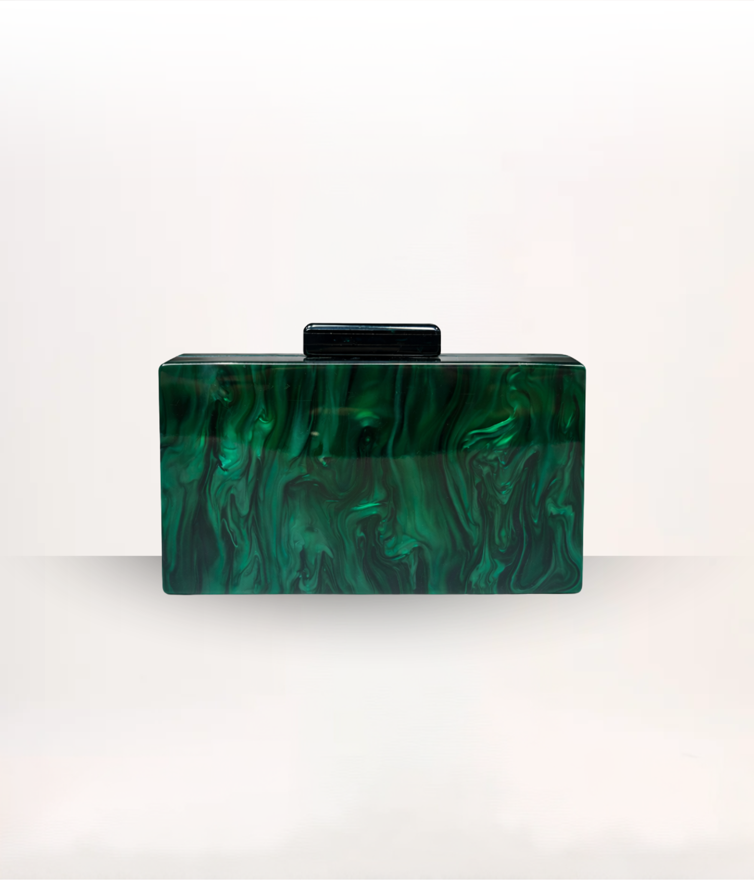 Sofisticada e elegante, esta clutch em acrílico marmorizado verde esmeralda é o acessório ideal para elevar produções elegantes. O efeito mesclado cria um visual único e moderno, trazendo profundidade e brilho sutil á peça.