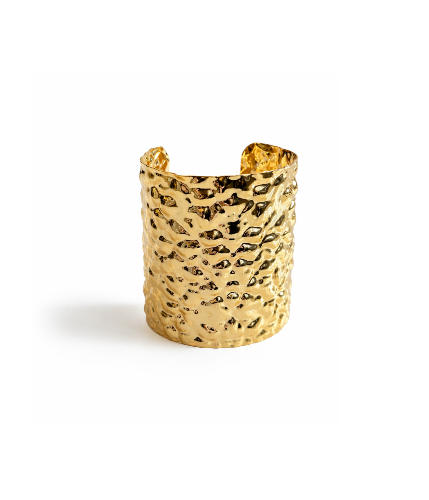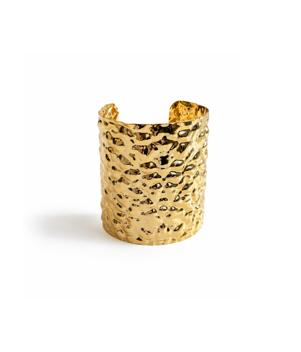 BRACELETE DOURADO PEPITAS Bracelete exclusivo confeccionado em metal na cor dourada com textura inspirada nas pepitas. Ajustável.