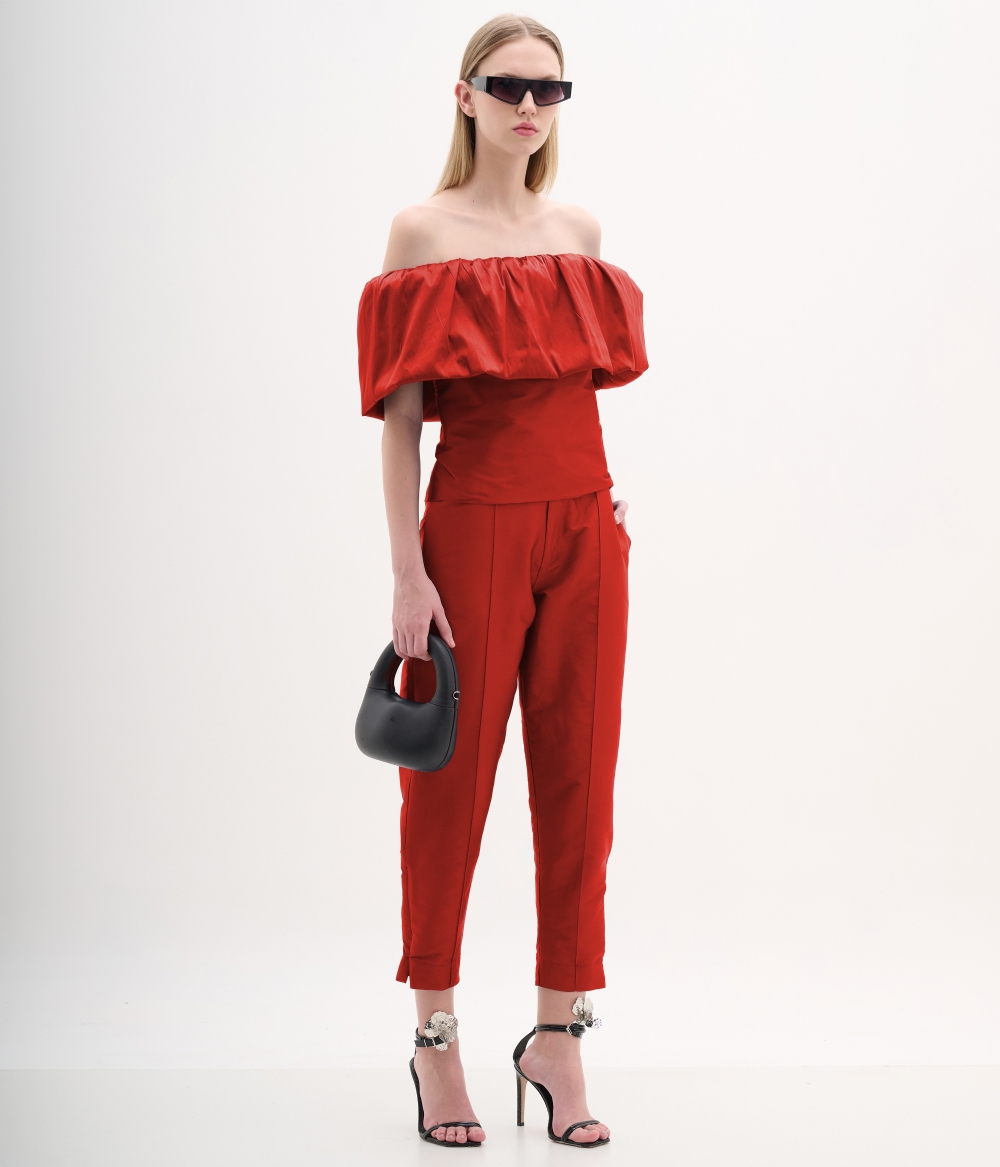 Calça alfaiataria de tafetá
