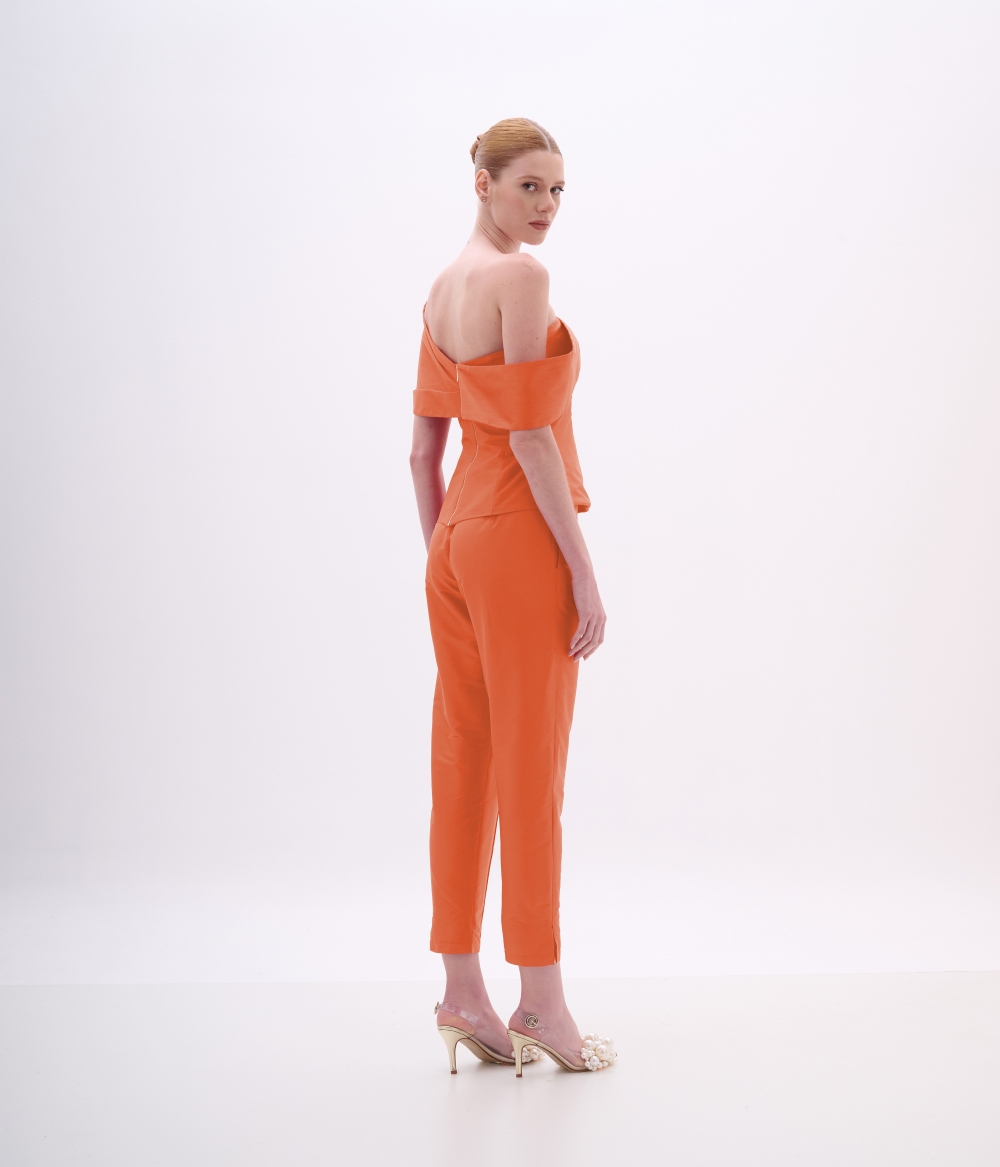 A calça de festa em tafetá une elegância e modernidade com uma modelagem impecável. Com cintura alta e caimento estruturado, o modelo cropped valoriza a silhueta e adiciona um toque fashion ao look. A cor dourado queimado — sofisticada e contemporânea — é perfeita para composições monocromáticas ou coordenadas com tops de destaque.