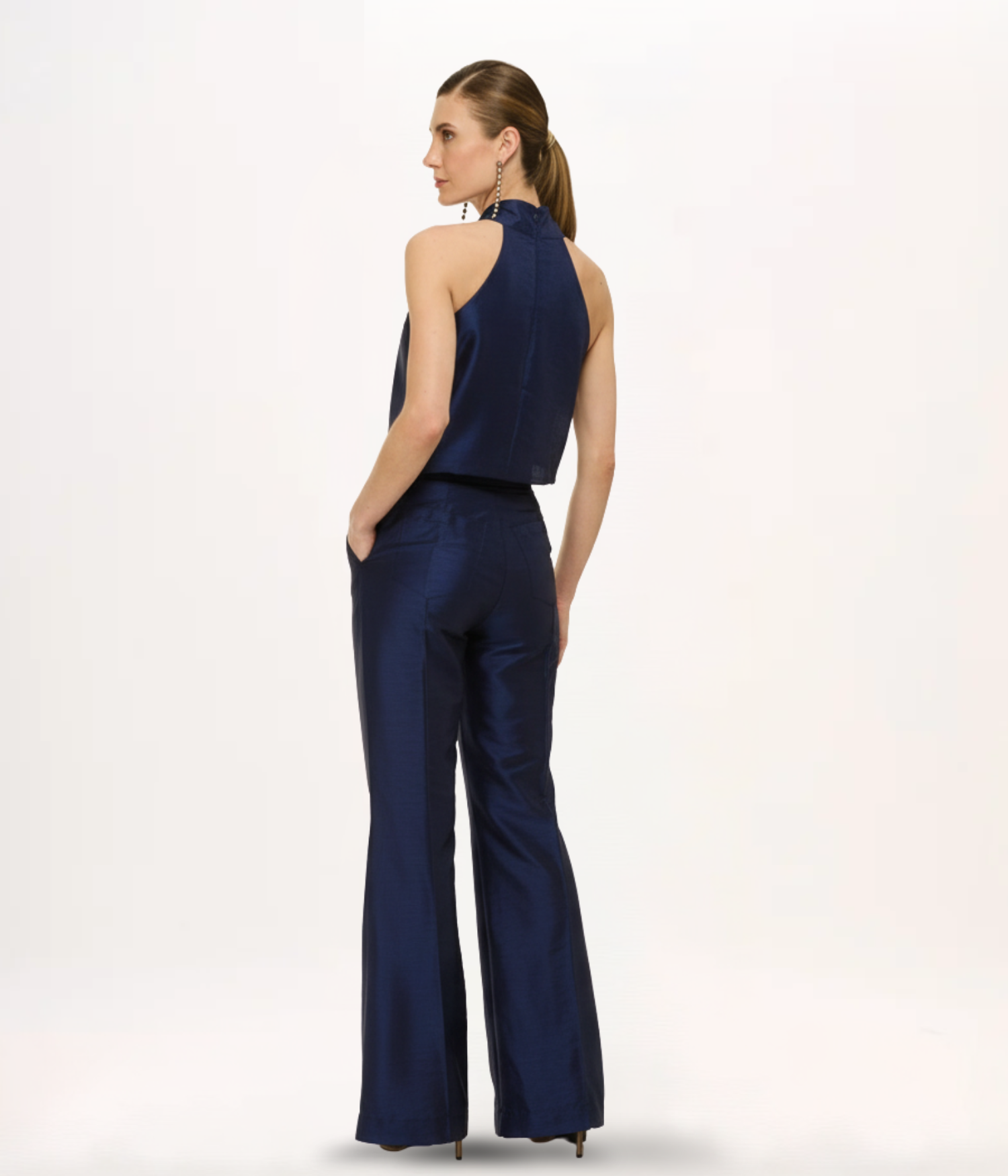 A Calça Flare em Shantung é uma peça que irradia modernidade e elegância, ideal para quem busca sofisticação no guarda-roupa de luxo. Confeccionada em um tecido com textura singular e brilho sutil, este modelo se destaca pela sua modelagem clássica que alonga a silhueta de forma impecável. O caimento estruturado proporciona um visual limpo e arquitetônico, aliando conforto e design de excelência. É uma escolha perfeita para looks que exigem presença, autoridade e um estilo magnético.