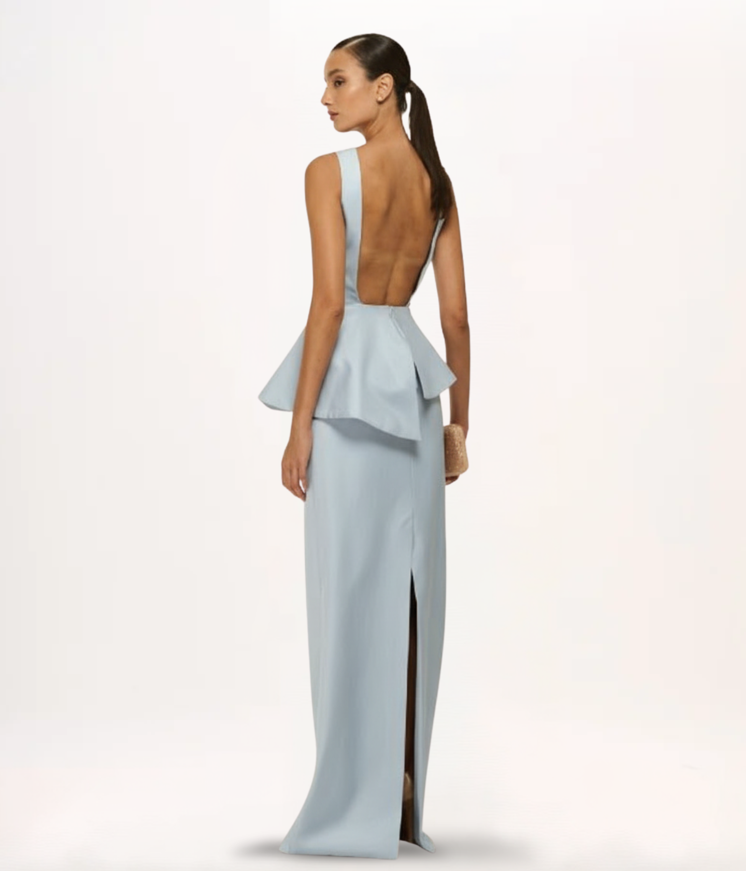 Conjunto Estruturado em Zibeline com Top Peplum e Saia Longa