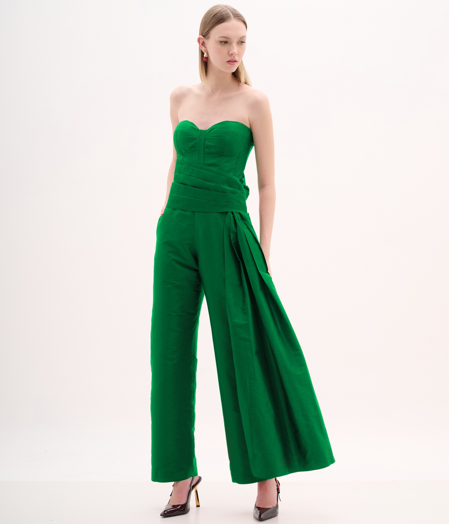 Macacão confeccionado em taffeta.