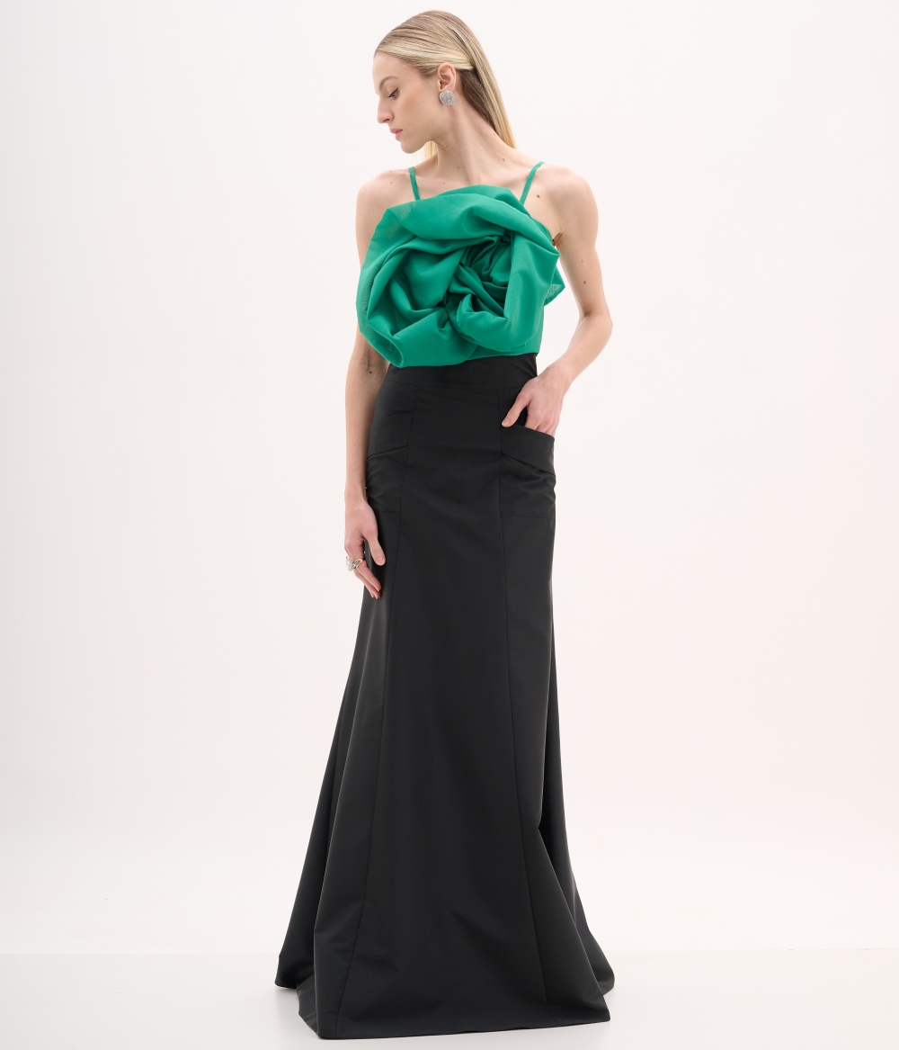 A saia de festa longa preta é uma peça elegante e atemporal, ideal para composições sofisticadas em eventos formais. Com modelagem precisa e acabamento refinado, oferece visual moderno e versátil, perfeito para produções de alto padrão com blusas ou tops elaborados.
