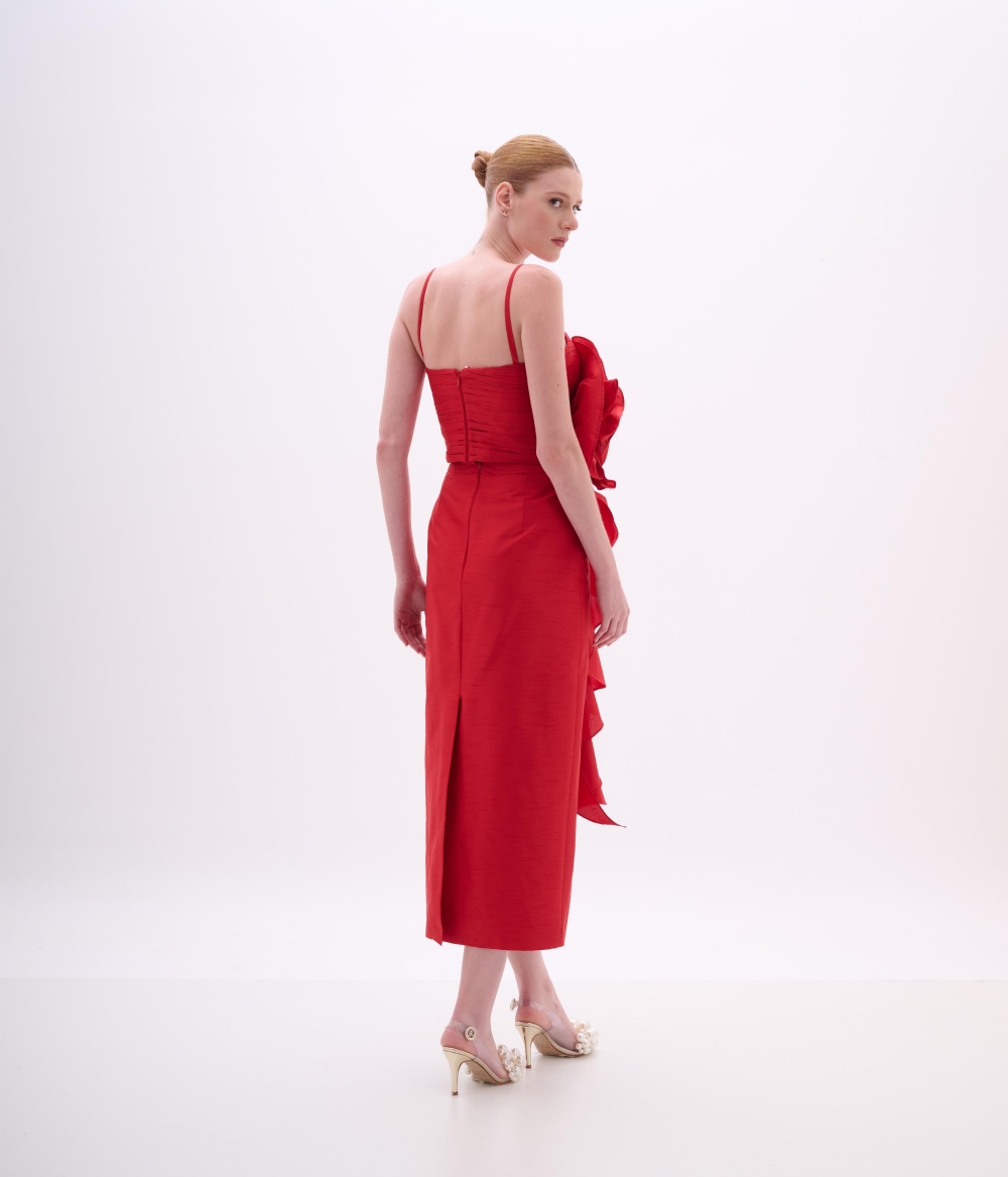 A Saia Lápis em Shantung Vermelha é uma peça de alfaiataria feminina, elegante e extremamente versátil, pensada para compor looks sofisticados com linhas limpas. Confeccionada em shantung, tecido encorpado com textura sutil e brilho discreto, este modelo se destaca pela modelagem lápis que acompanha a silhueta e pelo acabamento minimalista. A fenda posterior garante mobilidade com discrição, enquanto o zíper posterior mantém a frente totalmente clean.