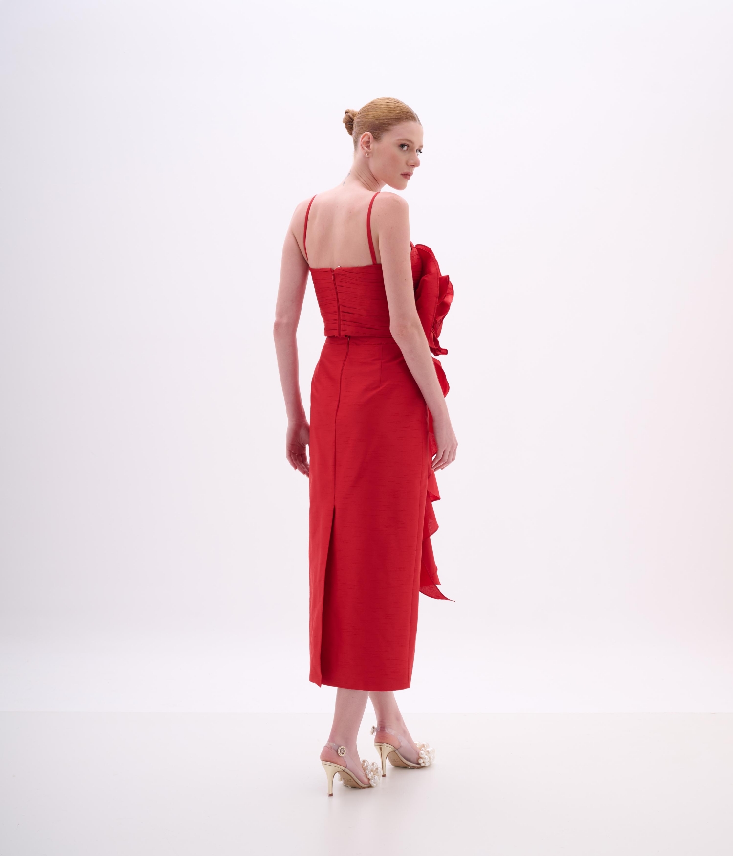 SAIA LÁPIS EM SHANTUNG VERMELHA