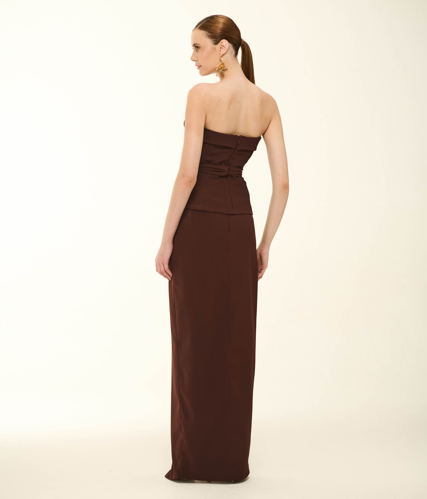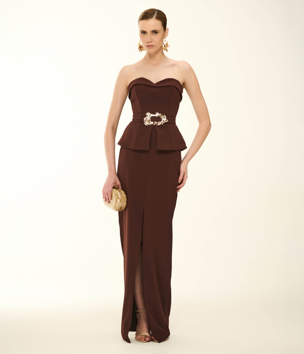 Saia Longa em Crepe de Alfaiataria Cor Choco