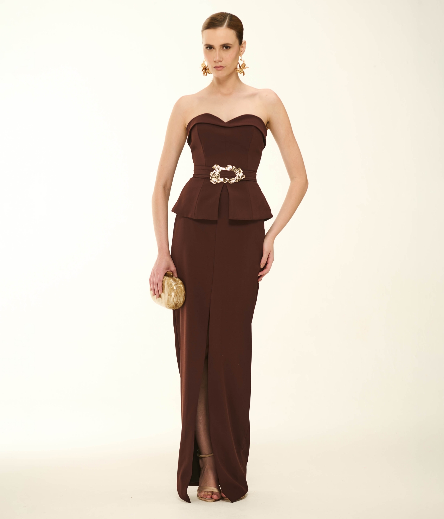 Uma peça-chave absoluta. Para um look diurno e executivo, combine-a com camisas de seda em tons off-white ou nude. Para eventos noturnos ou jantares, aposte em um visual monocromático com uma blusa ou corset no mesmo tom Choco. O marrom profundo é a tela perfeita para acessórios dourados robustos, criando um contraste quente e iluminado que eleva instantaneamente o padrão da produção.