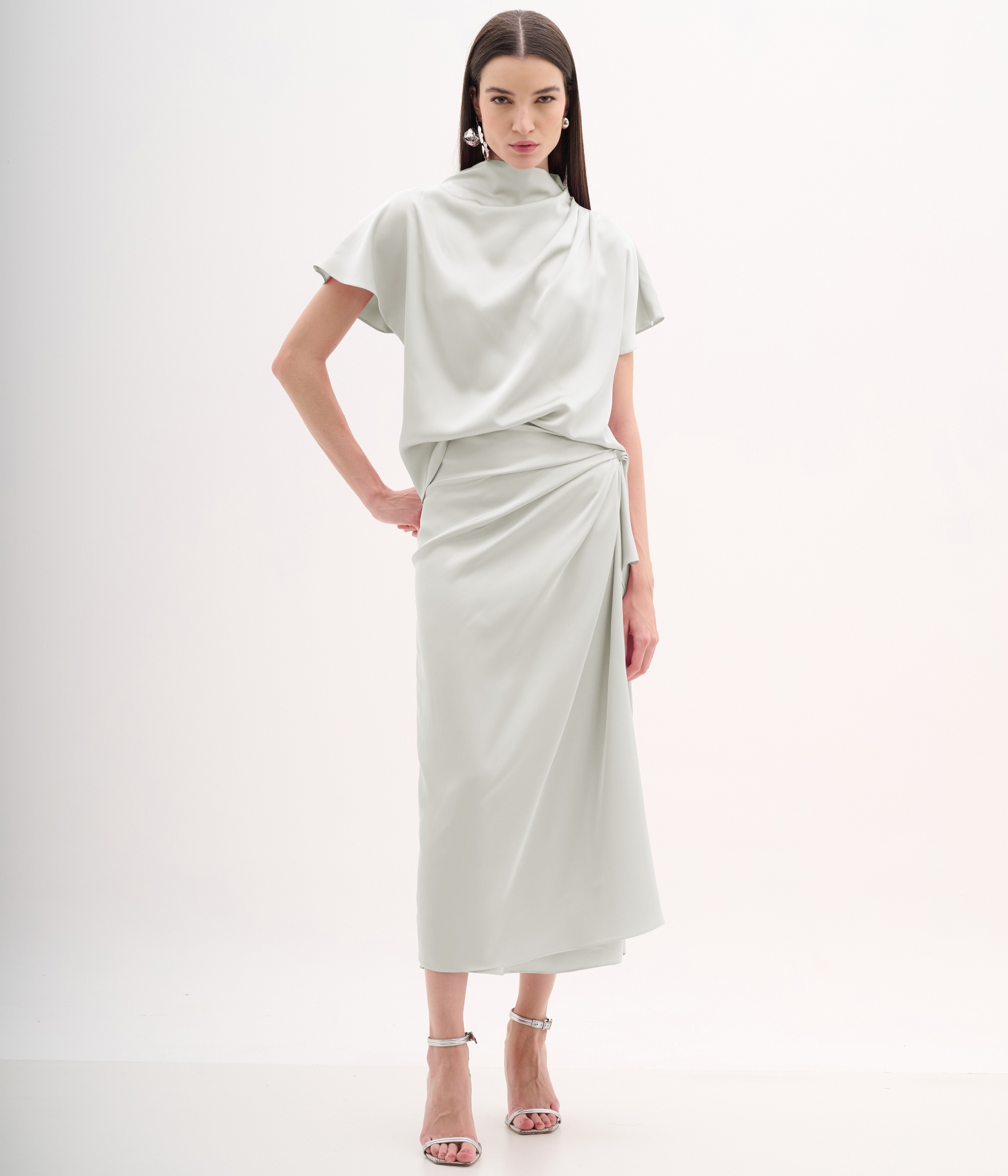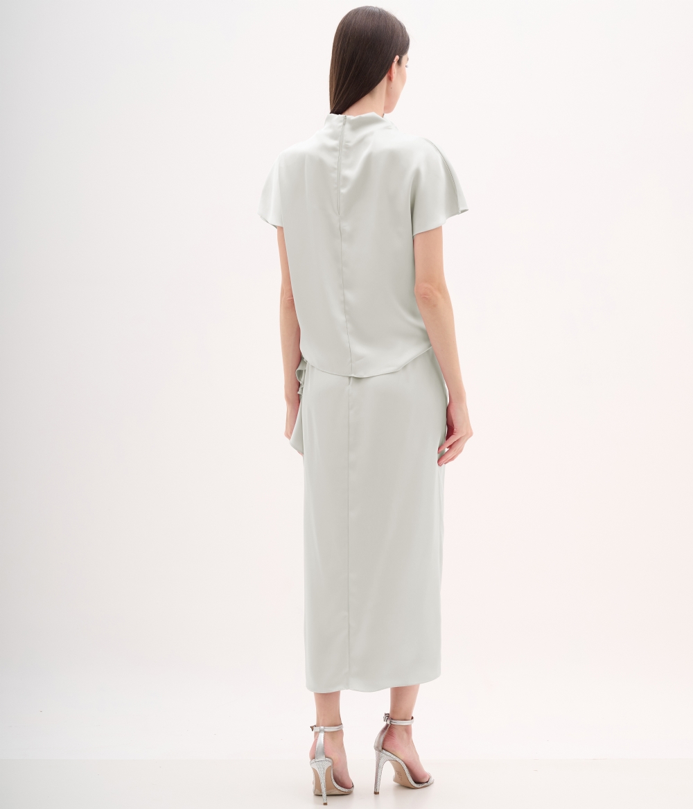 Saia midi com degagê lateral