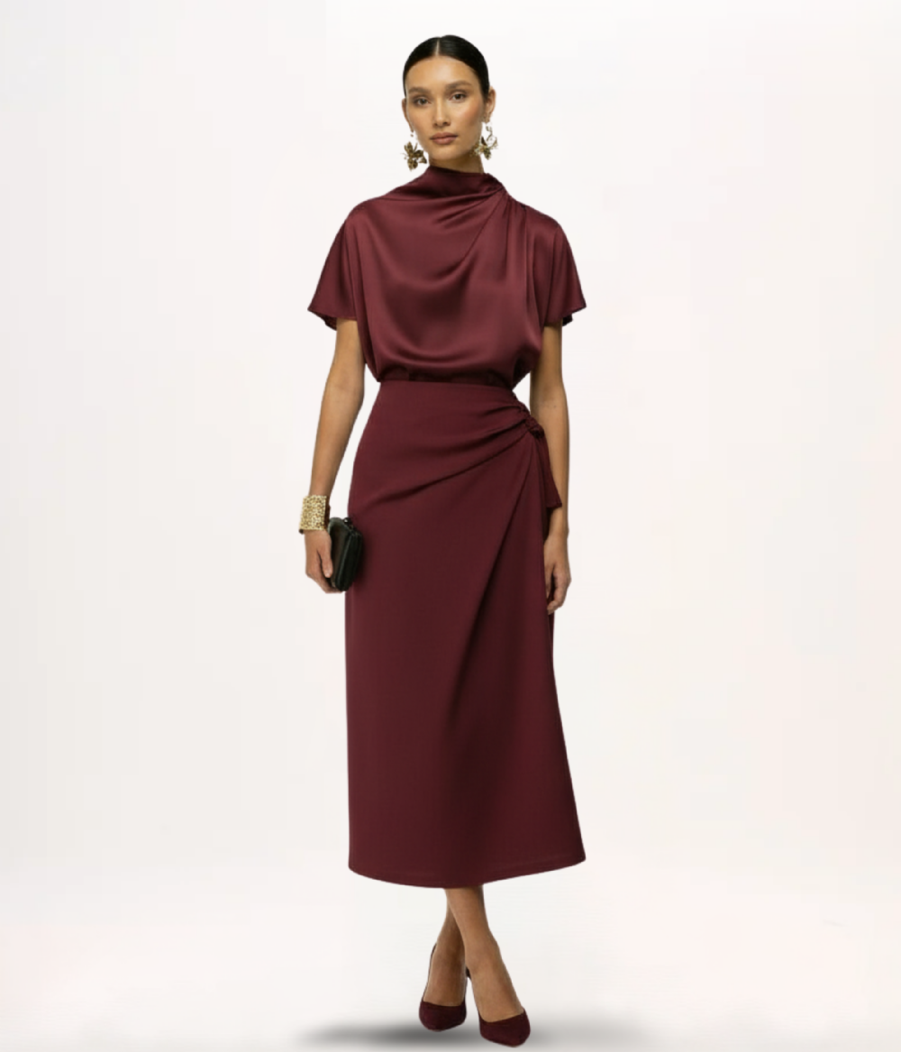 Uma peça coringa para transitar entre eventos diurnos refinados e jantares noturnos. Pode ser combinada com blusas no mesmo tecido e cor para um efeito de vestido único (visual monocromático elegante), ou harmonizada com tops de seda, blusas ajustadas ou camisas clássicas de alfaiataria. Complete com sandálias de salto e joias delicadas para um evento especial, ou scarpins para um ambiente profissional de alto nível.