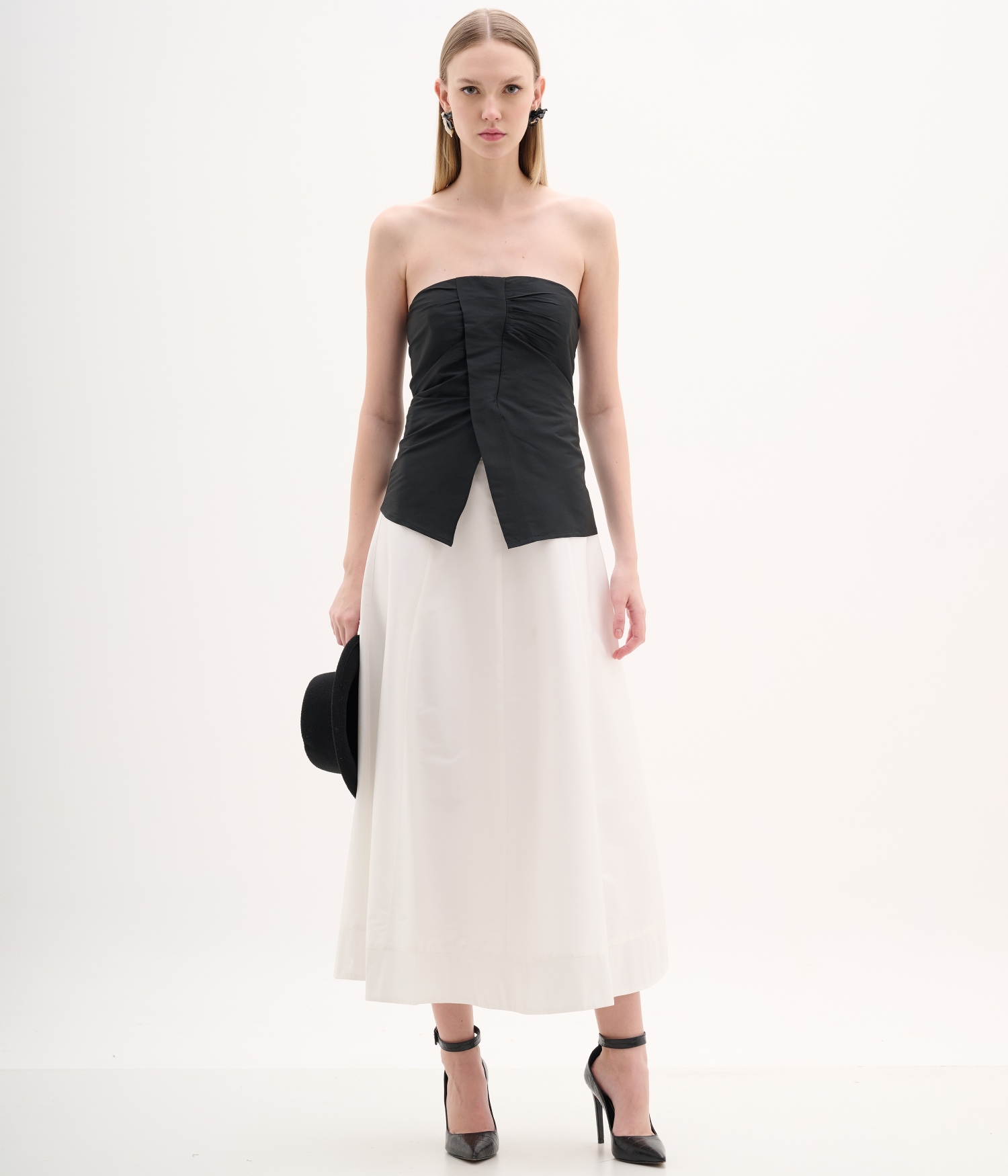 Saia midi em tafetá evasée