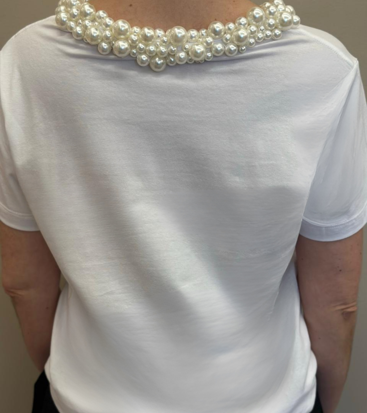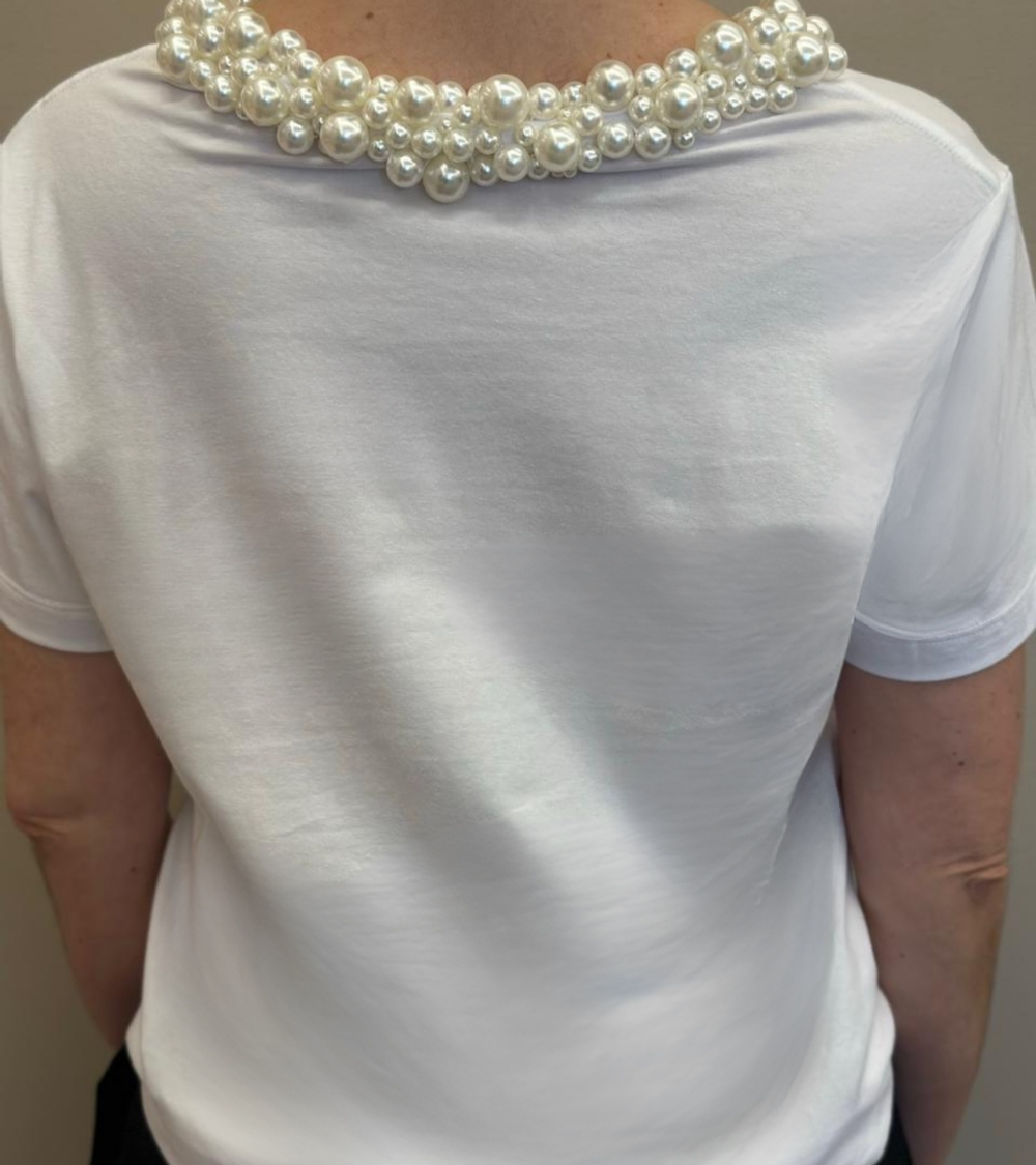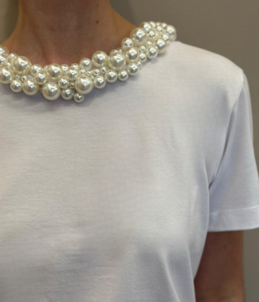 Confeccionada em algodão egípcio com pérolas bordadas em seu decote, a T- shirt das gêmeas é o lançamento inédito e limitado da coleção!