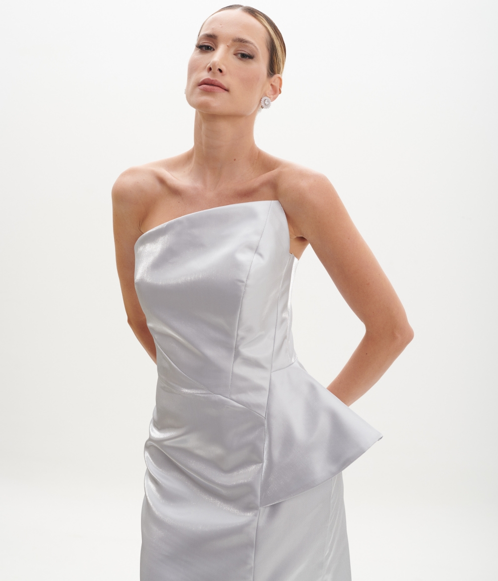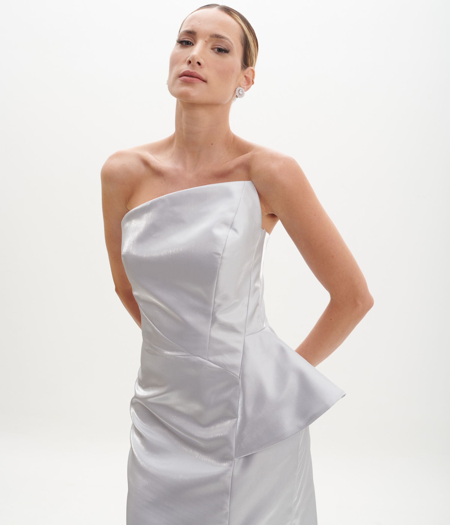 Vestido de festa prata assimétrico NÃO ACOMPANHA ACESSÓRIO