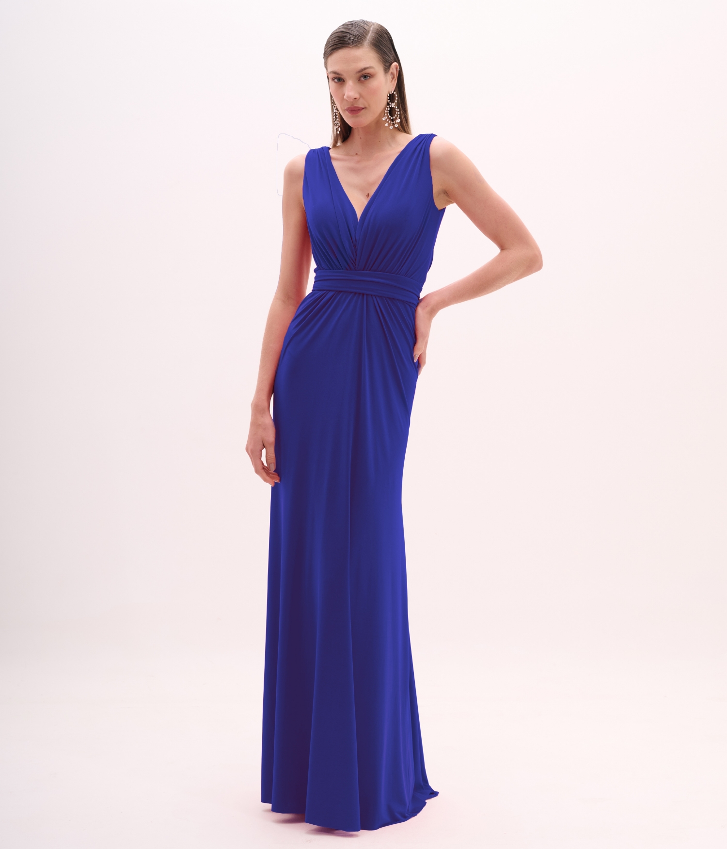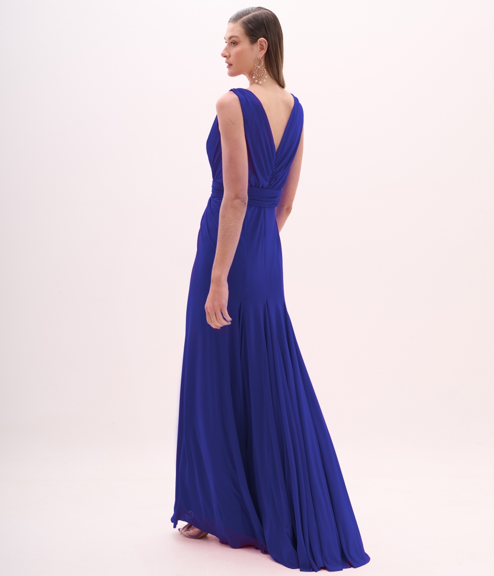 Vestido de festa basquiat com decote v e nesgas nas costas