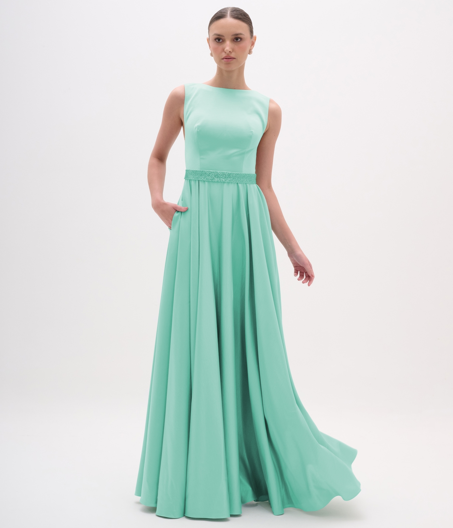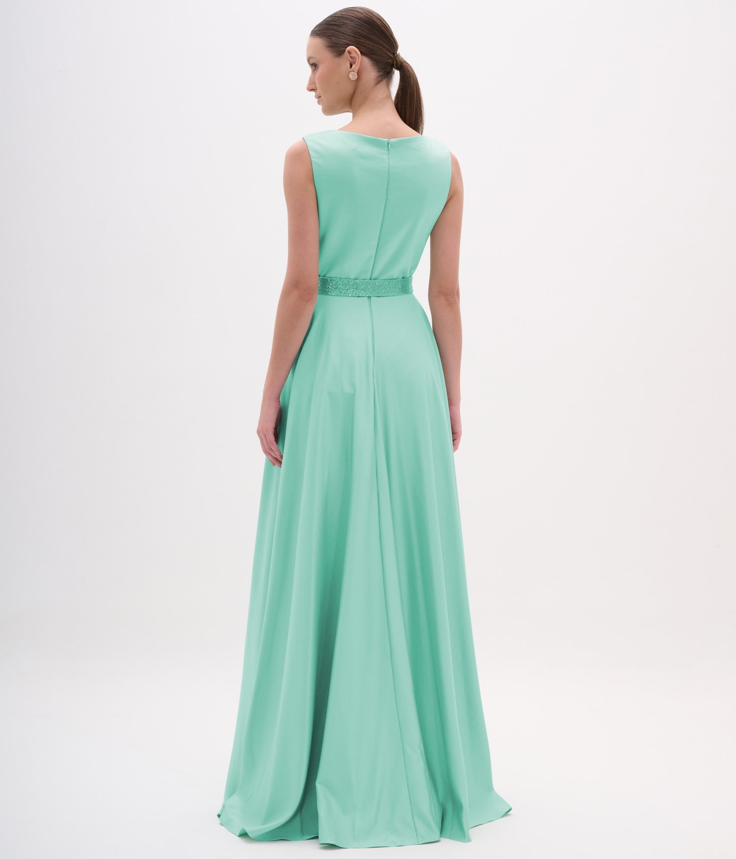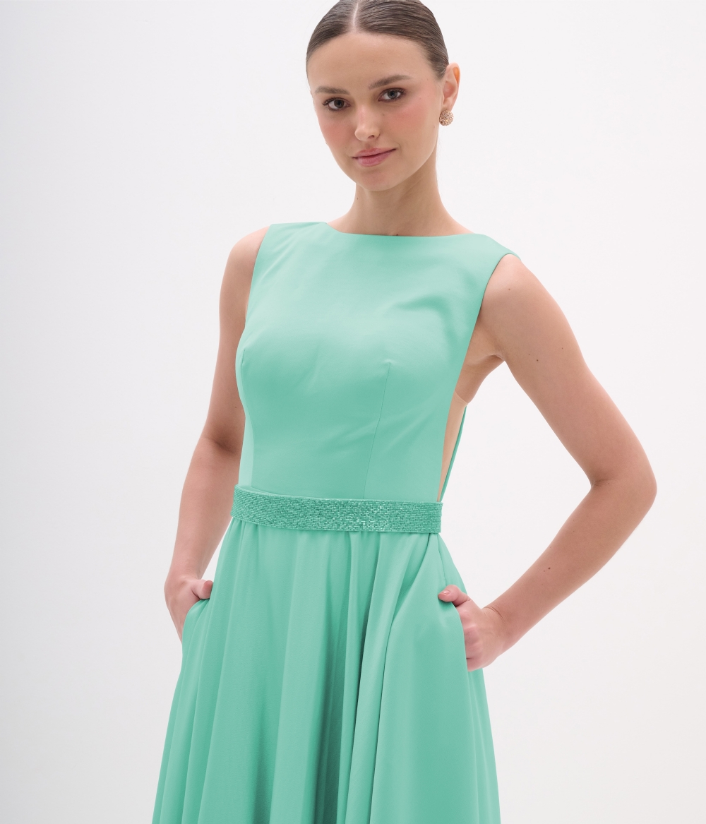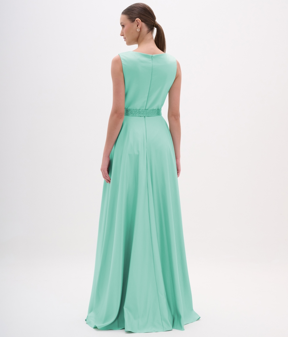 Vestido de festa clássico sem mangas com saia godé