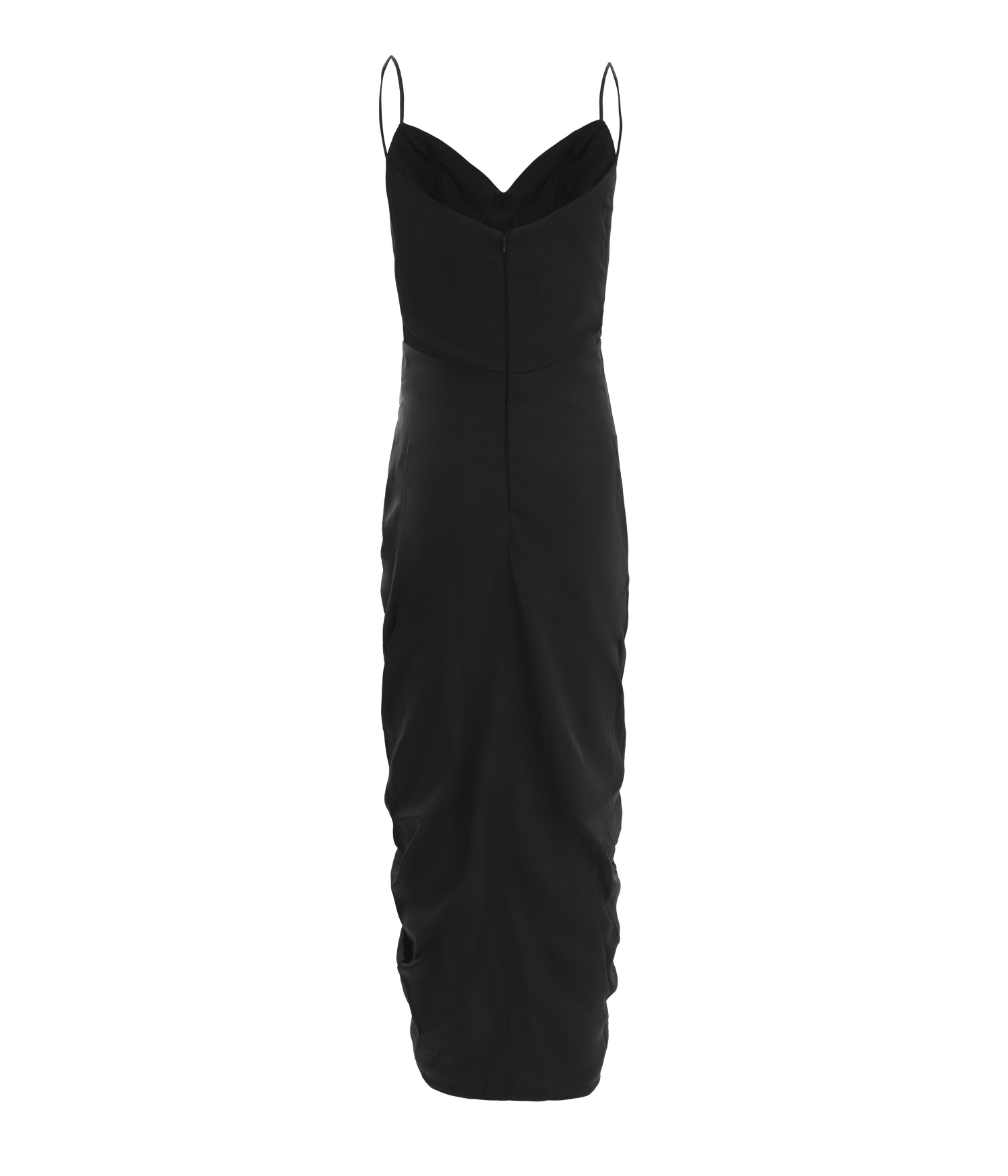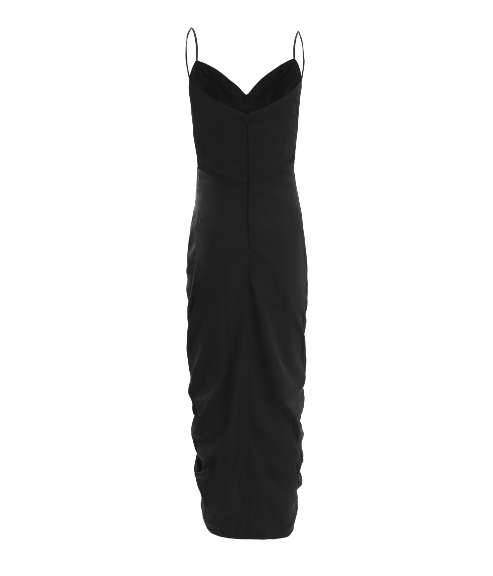 Vestido de festa drapeado com babado