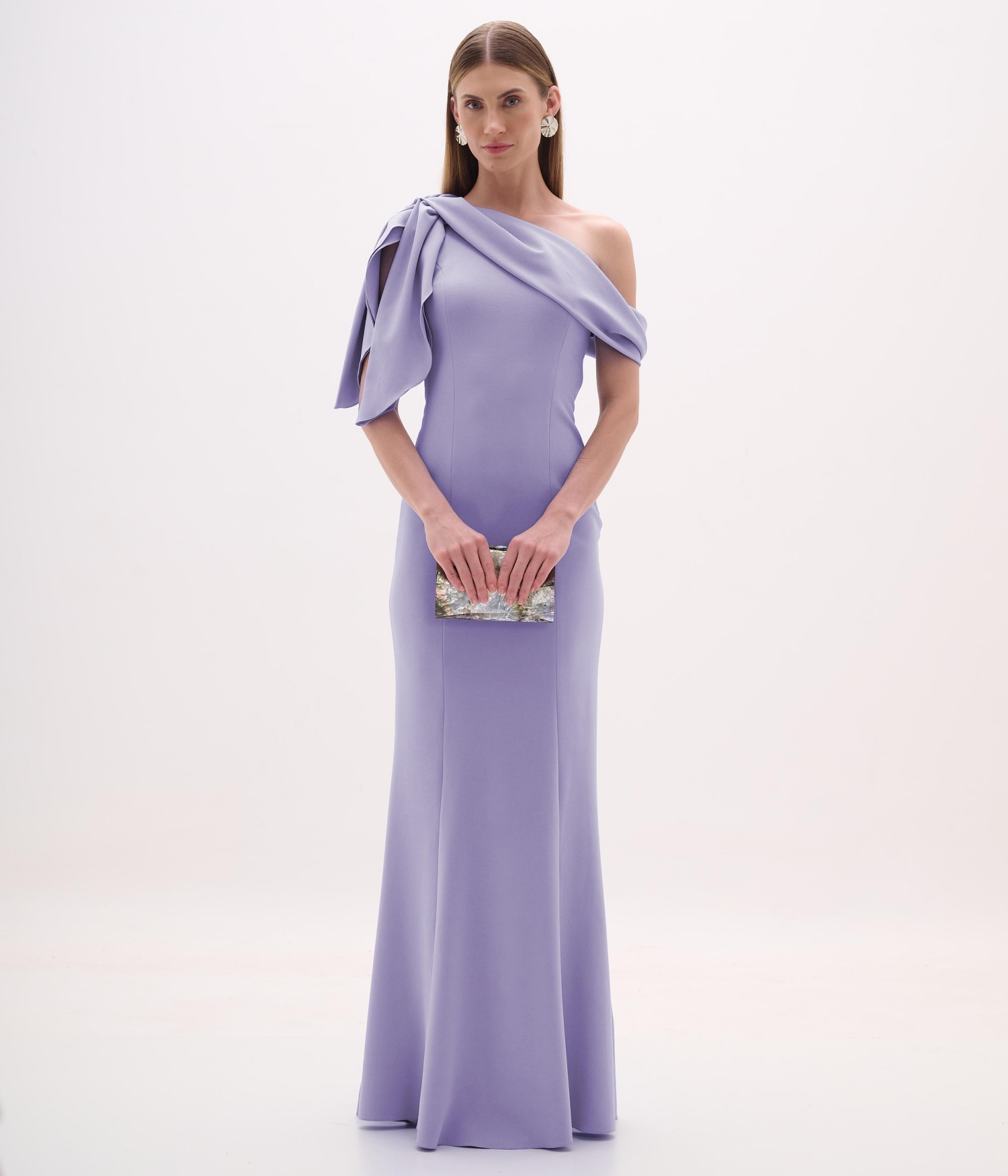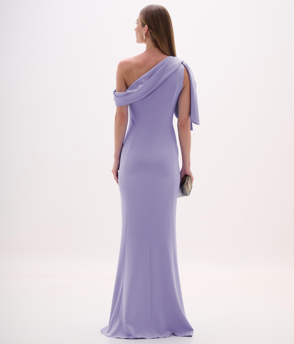 Vestido de festa longo com laço no ombro