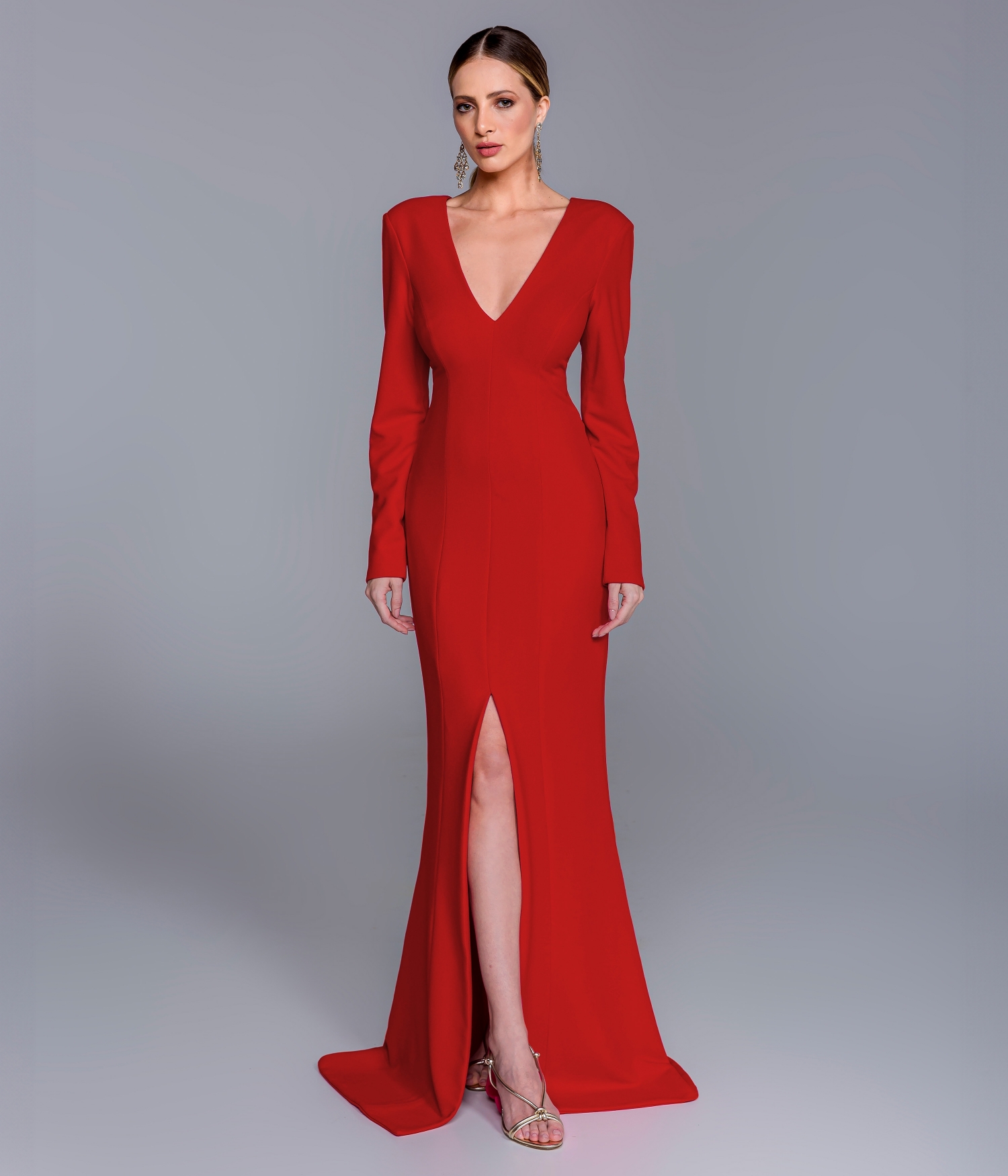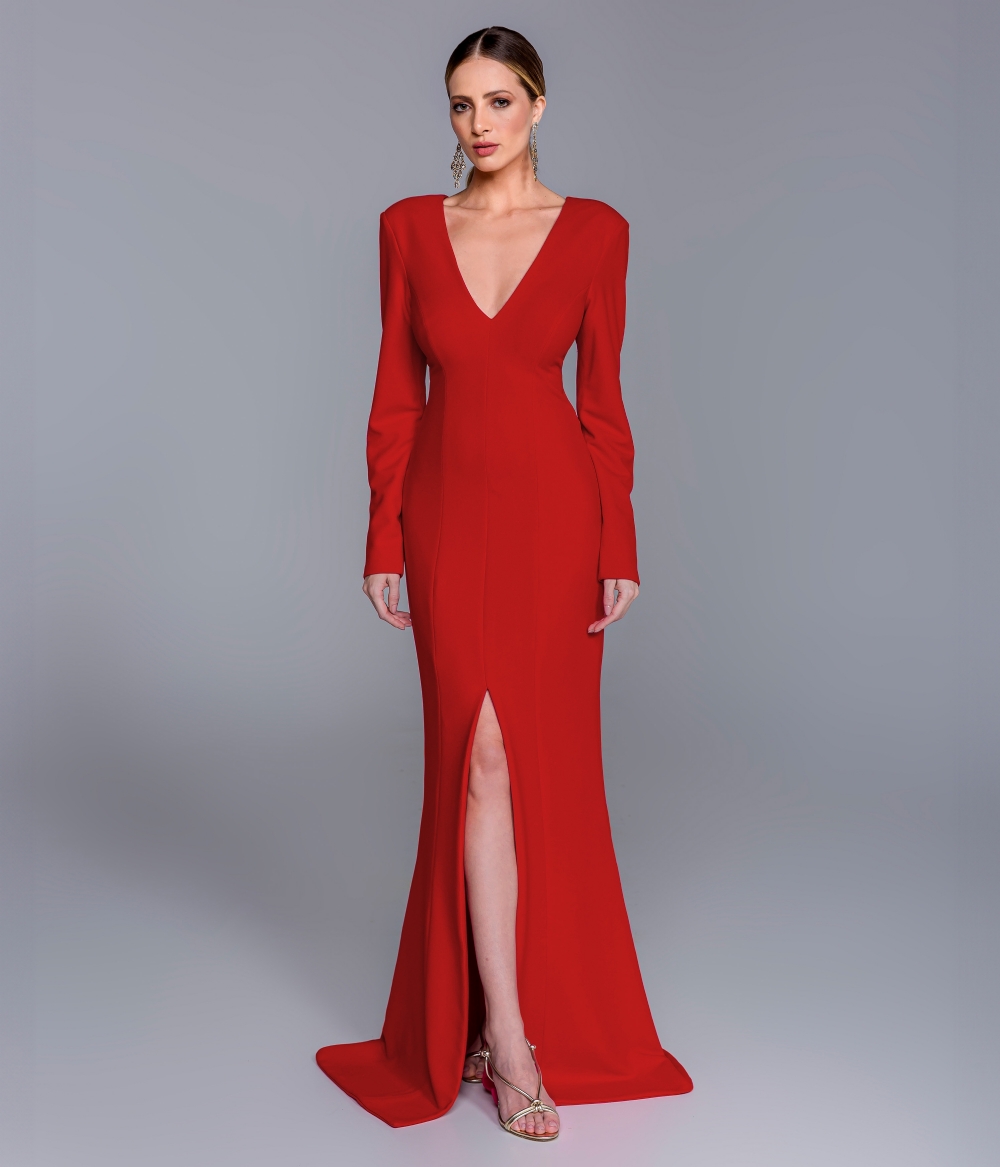 Vestido de festa longo com manga
