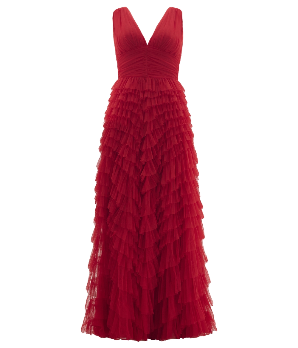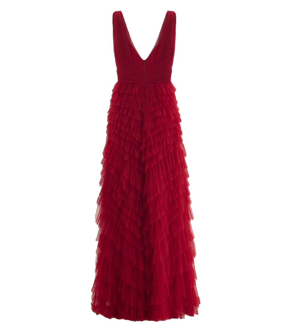 Vestido de festa longo em tule babados