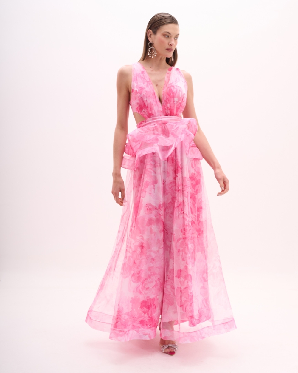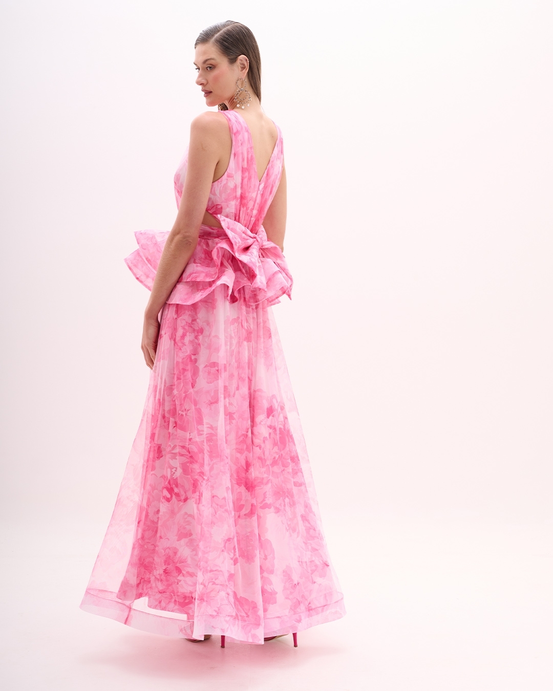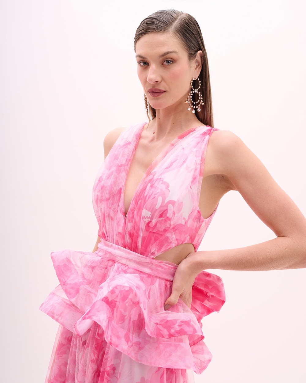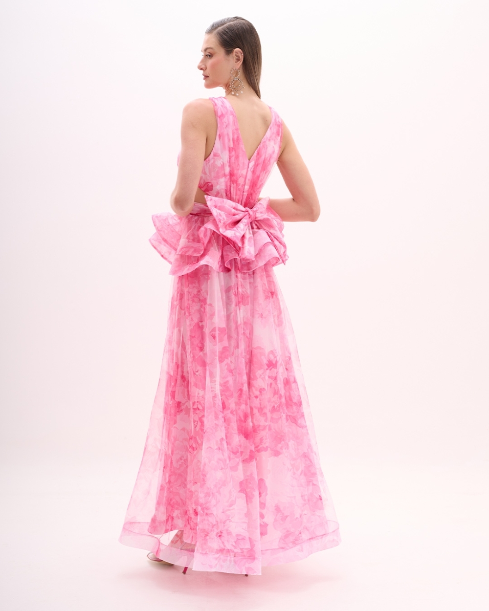 Vestido de festa longo estampado jabour
