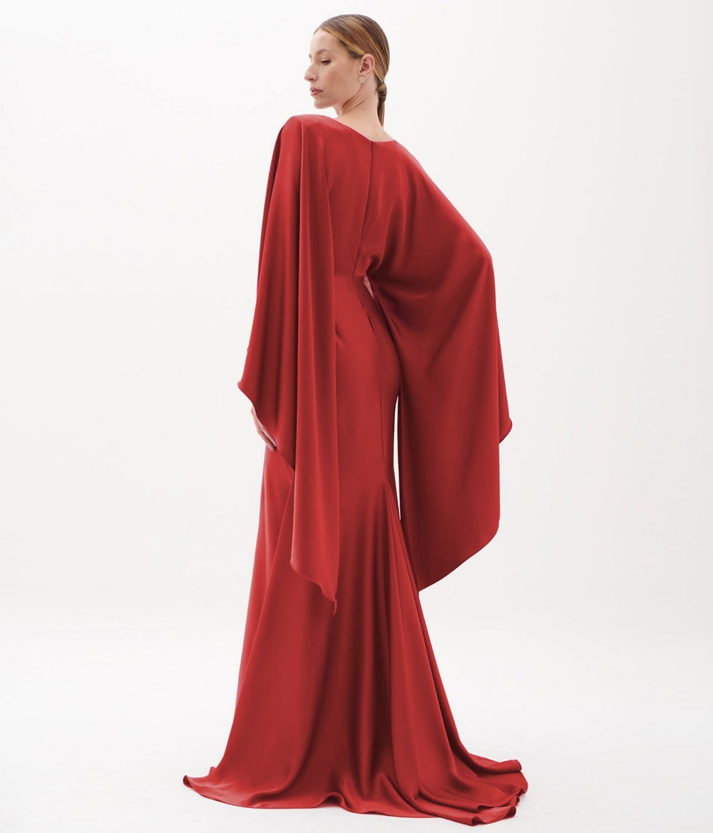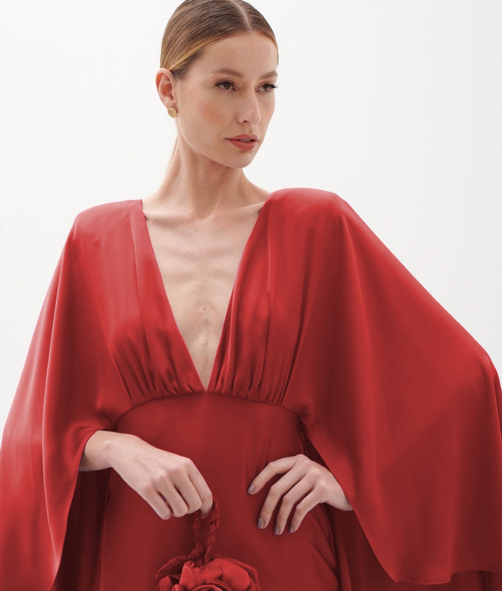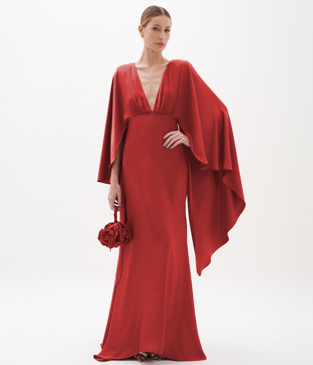 Vestido de festa longo fluido e decote v