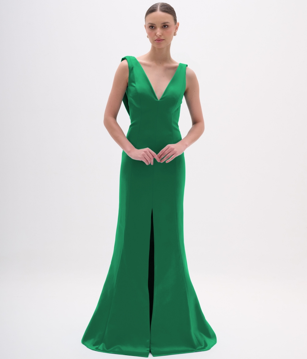 Vestido de festa longo maxi fenda decote costas