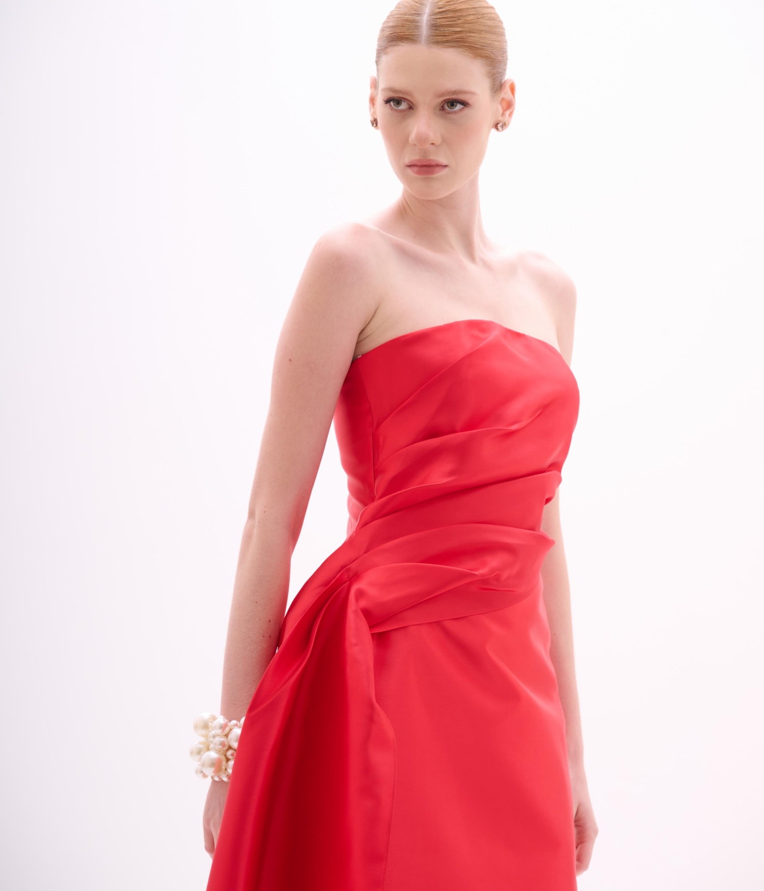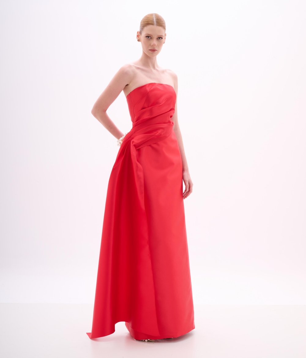 O vestido de festa longo vermelho em zibeline é uma escolha sofisticada para ocasiões que pedem impacto e elegância. Com modelagem estruturada e brilho acetinado característico do tecido, o modelo tomara que caia valoriza a silhueta e entrega uma proposta moderna e refinada para quem busca um vestido longo para casamento ou eventos formais.