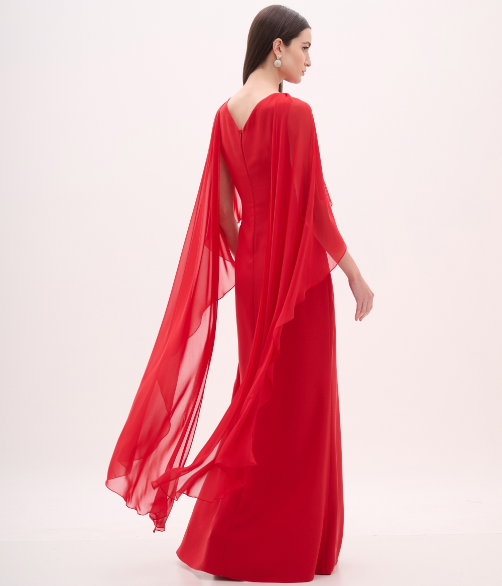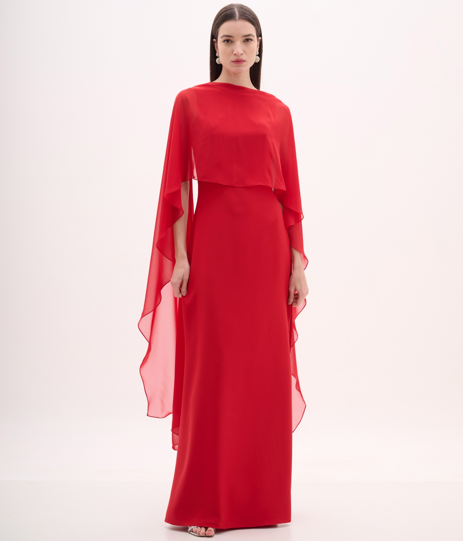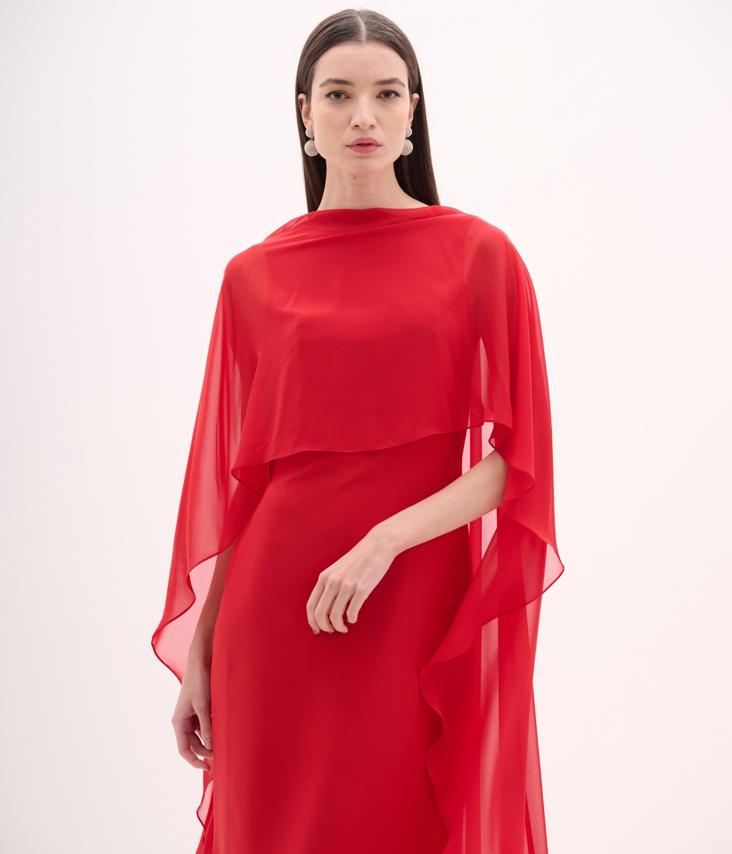 Vestido confeccionado em musseline c/ crepe acetinado leve