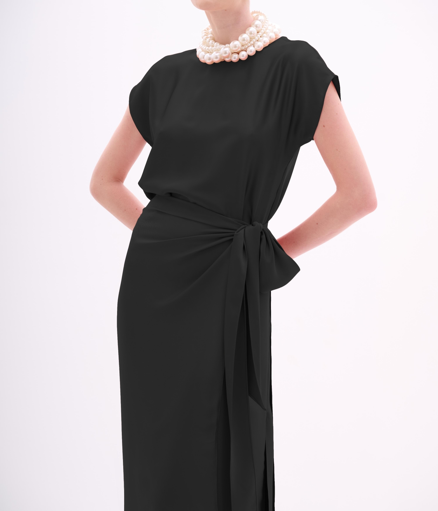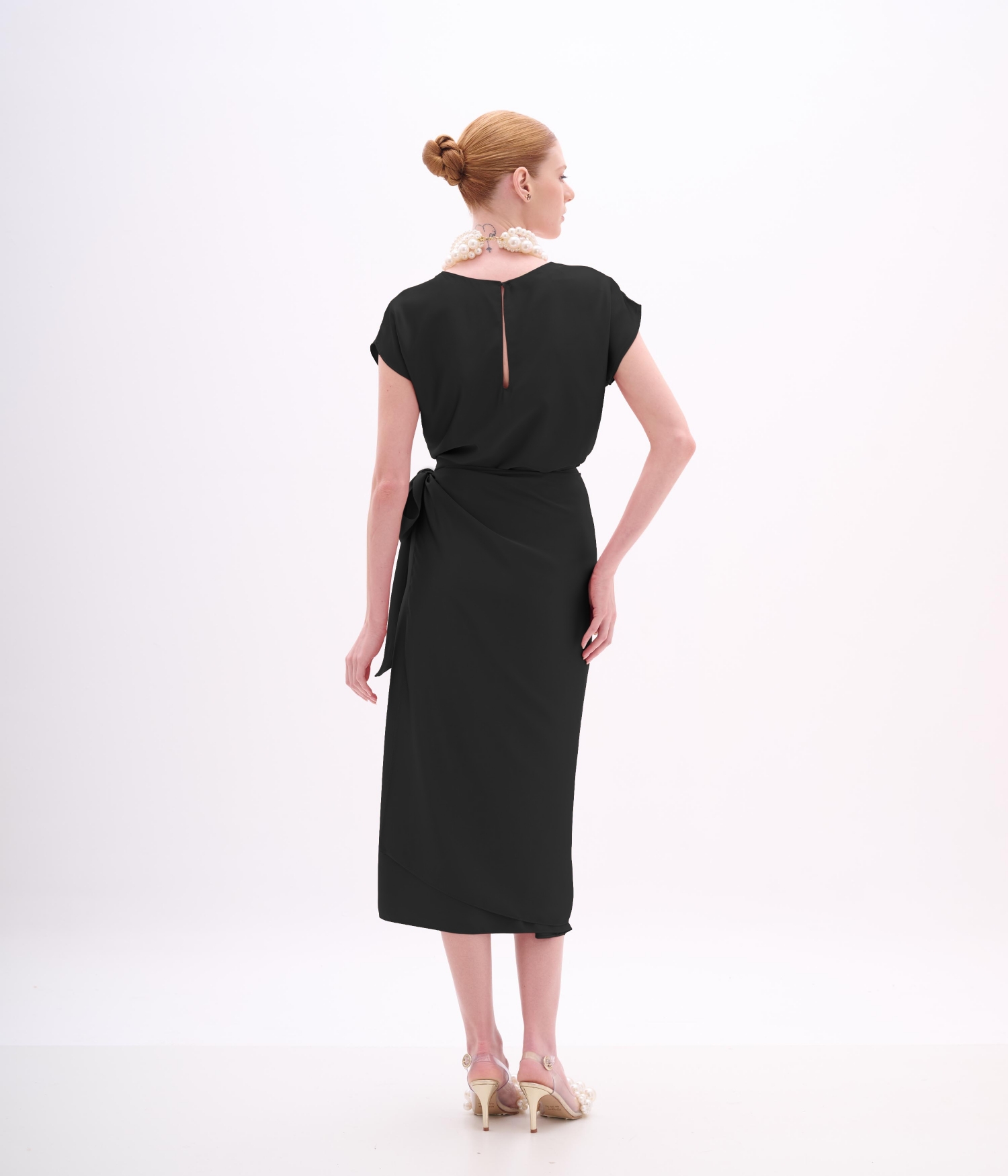 O vestido de festa midi preto em cetim é uma proposta elegante e minimalista para eventos que pedem sofisticação. Com caimento leve e acabamento acetinado, o modelo é perfeito para quem busca um vestido elegante e contemporâneo para casamento, recepções ou celebrações especiais.