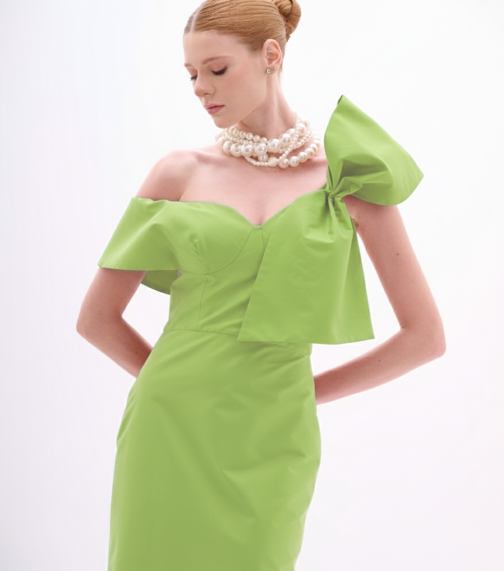 Vestido em Tafetá com Decote Estruturado Energy Green
