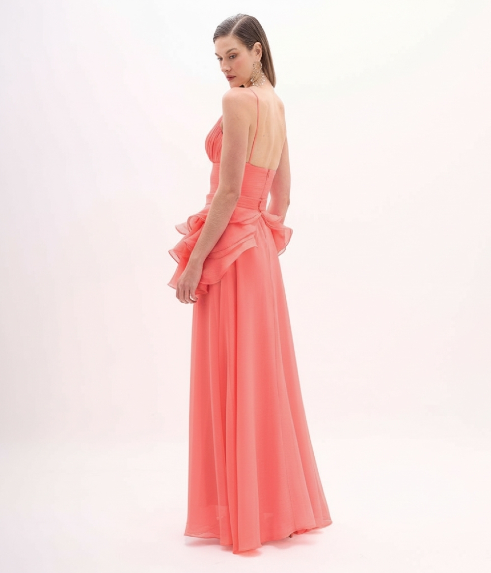Vestido Longo em Musseline Texturizada com Basque Multiposição