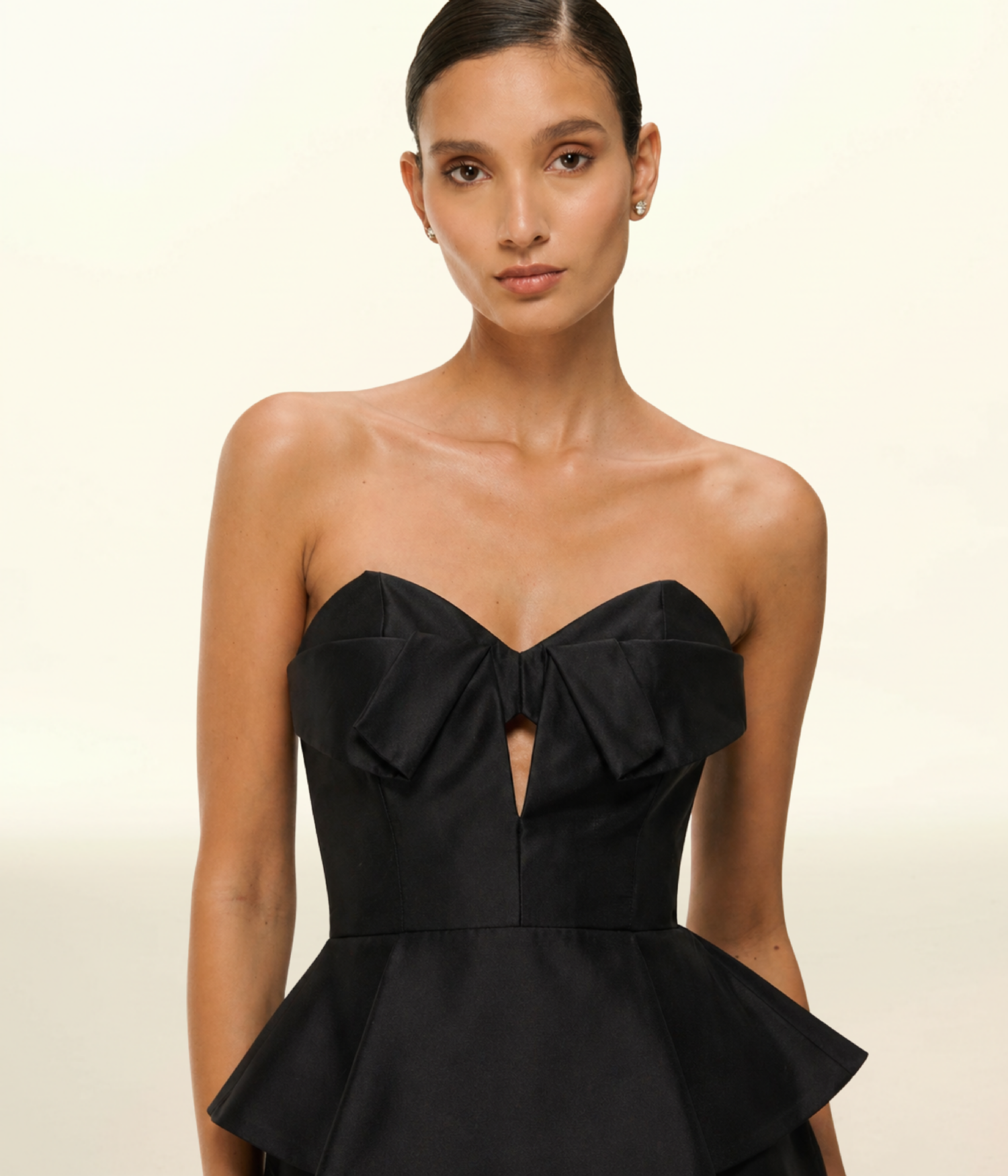 • Peplum arquitetônico com volume preciso e acabamento limpo.