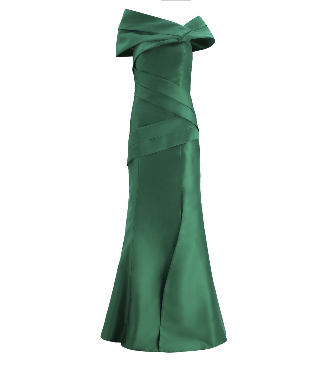 VESTIDO LONGO EM ZIBELINE VERDE ESMERALDA OMBRO A OMBRO