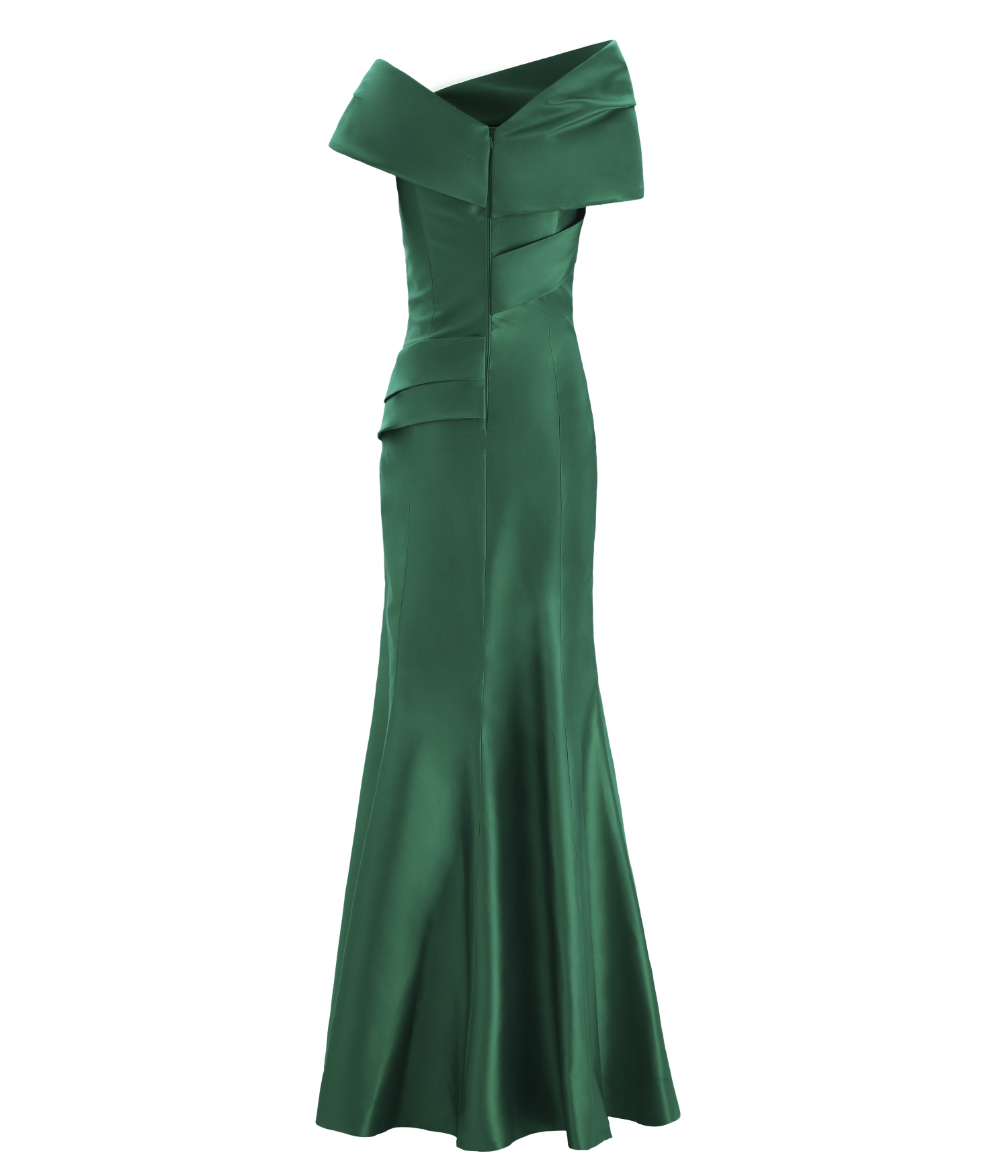 Vestido Longo em Zibeline Verde Esmeralda Ombro a Ombro