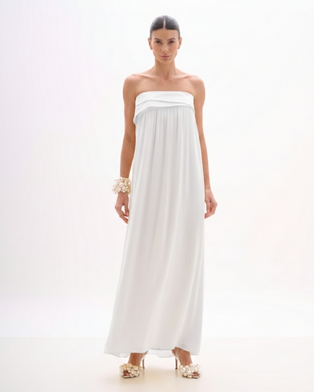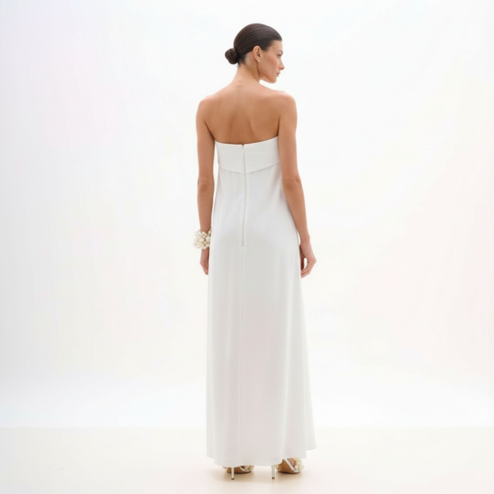 Vestido Longo em Crepe Fluido Branco
