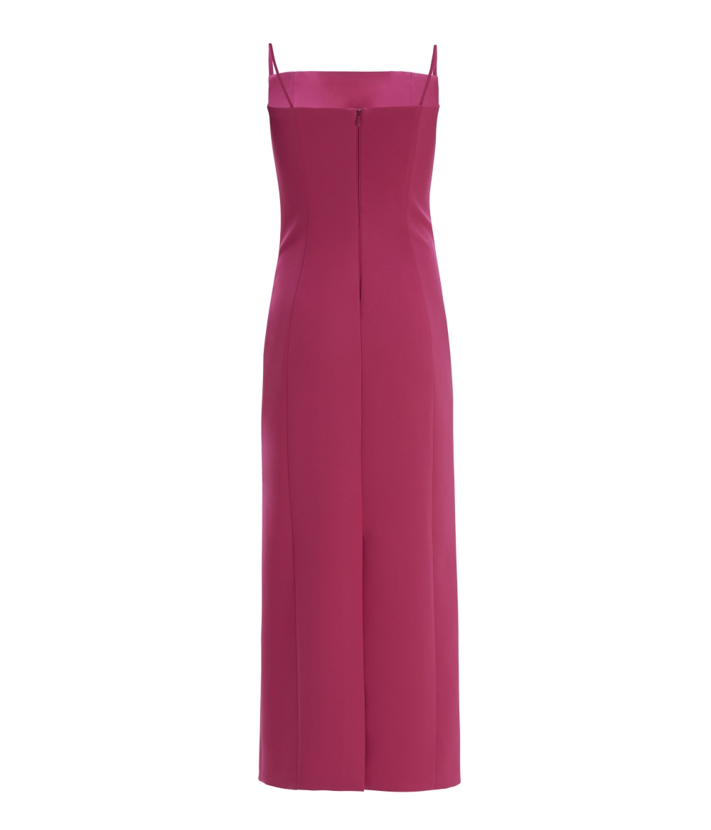 Vestido Midi em Crepe de Malha Marsala com Alças Finas