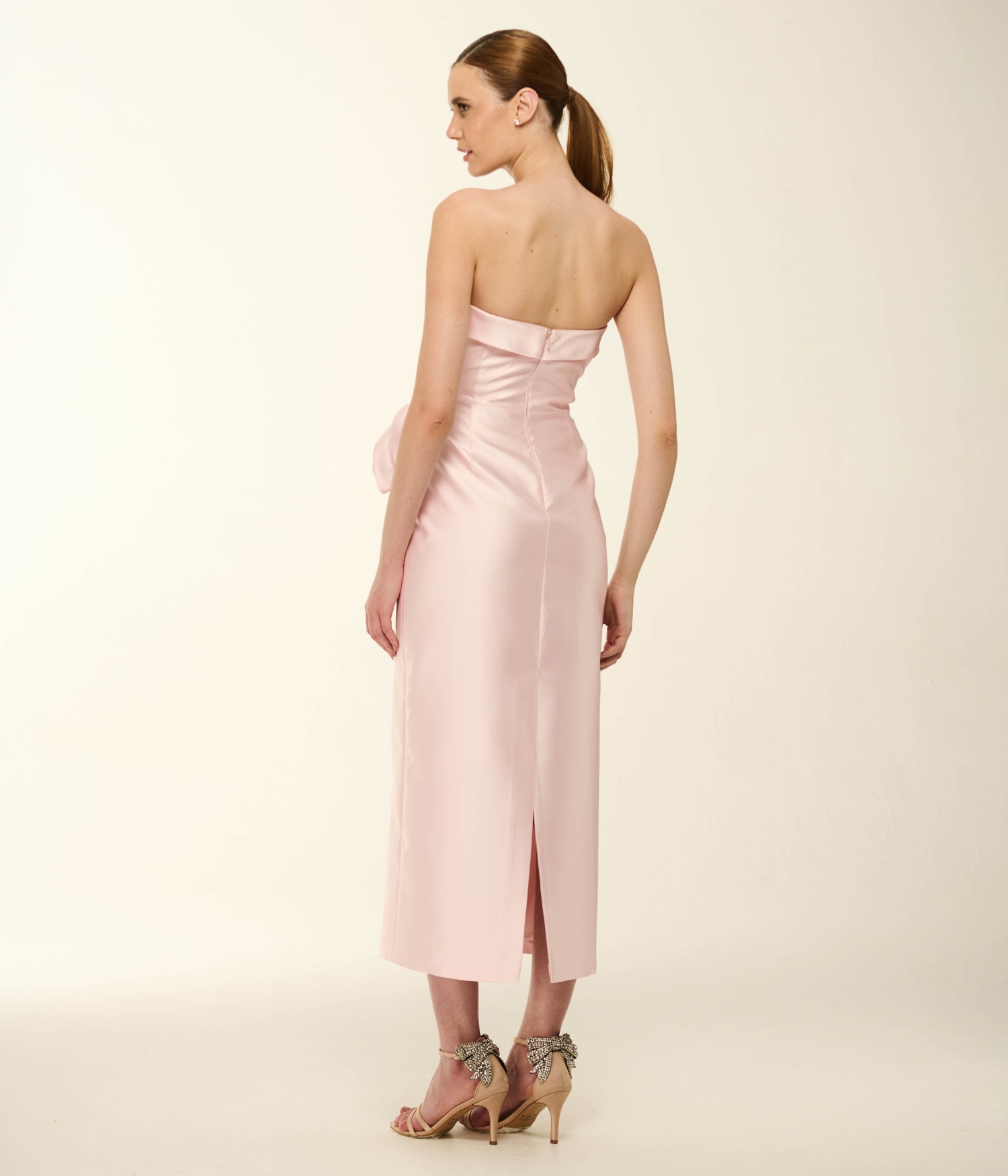 O midi em Rosa Cristal é a opção insuperável para casamentos de dia, batizados, noivados, almoços comemorativos ou coquetéis elegantes. Para alongar ainda mais a silhueta, harmonize com sandálias de tiras finas em tons de nude, prata ou ouro branco. Acessórios com pérolas modernas ou pedrarias translúcidas complementam a aura "cristal" do vestido com perfeição.
