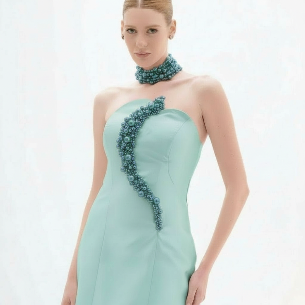 VESTIDO TOMARA QUE CAIA FRENTE BORDADA ZIBELINE SILK