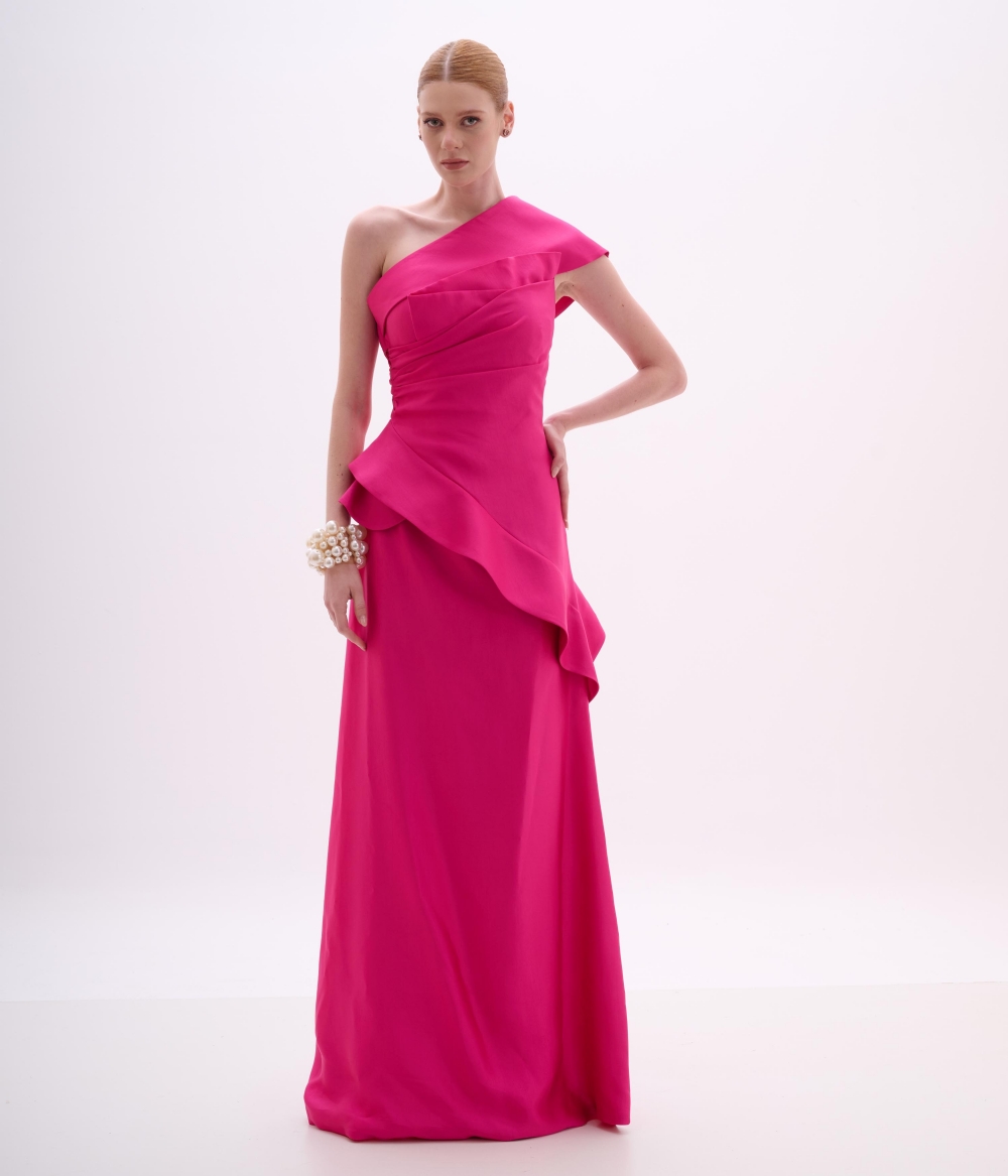 VESTIDO UM OMBRO SO BABADOS RAIA GIULLEN