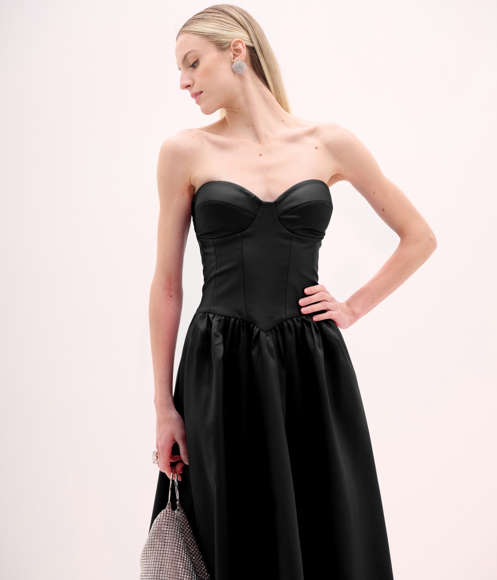 O vestido longo tomara que caia em zibeline é uma proposta sofisticada e marcante, ideal para eventos que pedem presença e elegância. Combinando a estrutura firme do corpo com o volume luxuoso da saia, o modelo cria uma silhueta clássica e atemporal, perfeita para madrinhas, formandas e ocasiões especiais.